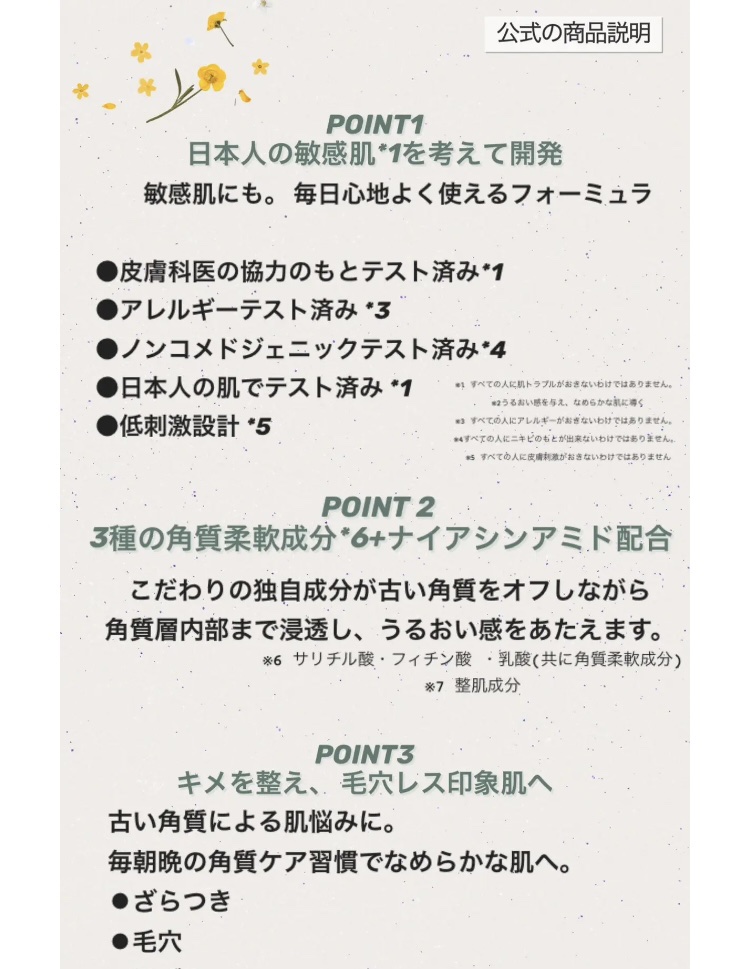 | すこしとろみのあるテクスチャーで、伸び肌馴染み共に◎べとつかないけどしっとり保湿してくれます! | 詳細を見る | |