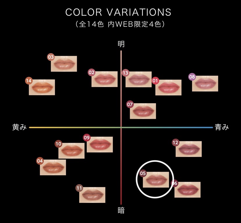 - <01 欲望の塊> テトライソステアリン酸ジペンタエリスリチル、トリ(カプリル酸/カプリン酸)グリセリル、オクチルドデカノール、ラウロイルグルタミン酸ジ(フィトステリル/オクチルドデシル)、ビスアルキル(C16-18)グリセリルウンデシルジメチコン、イソノナン酸イソトリデシル、水添ポリイソブテン、ラウロイルグルタミン酸ジ(オクチルドデシル/フィトステリル/ベヘニル)、パラフィン、合成ワックス、ダイマージリノール酸(フィトステリル/イソステアリル/セチル/ステアリル/ベヘニル)、マイクロクリスタリンワックス、水添マイクロクリスタリンワックス、ヒドロキシステアリン酸エチルヘキシル、トコフェロール、ホホバ種子油、オリーブ果実油、アーモンド油、(エチレン/プロピレン)コポリマー、ポリエチレン、ジメチコン、(+/-)(チタン/酸化チタン)焼結物、マイカ、ラウロイルアスパラギン酸Na、ラウロイルリシン、塩化亜鉛、酸化チタン、酸化鉄、水酸化Al、硫酸Ba、トリイソステアリン酸イソプロピルチタン、酸化スズ、ホウケイ酸(Ca/Al)、合成フルオロフロゴパイト、黄4、黄5、赤104(1)、赤201、赤202 <02 ピンクバナナ> テトライソステアリン酸ジペンタエリスリチル、トリ(カプリル酸/カプリン酸)グリセリル、オクチルドデカノール、ラウロイルグルタミン酸ジ(フィトステリル/オクチルドデシル)、ビスアルキル(C16-18)グリセリルウンデシルジメチコン、イソノナン酸イソトリデシル、水添ポリイソブテン、ラウロイルグルタミン酸ジ(オクチルドデシル/フィトステリル/ベヘニル)、パラフィン、合成ワックス、ダイマージリノール酸(フィトステリル/イソステアリル/セチル/ステアリル/ベヘニル)、マイクロクリスタリンワックス、水添マイクロクリスタリンワックス、ヒドロキシステアリン酸エチルヘキシル、トコフェロール、ホホバ種子油、オリーブ果実油、アーモンド油、(エチレン/プロピレン)コポリマー、ポリエチレン、ジメチコン、(+/-)(チタン/酸化チタン)焼結物、マイカ、ラウロイルアスパラギン酸Na、ラウロイルリシン、塩化亜鉛、酸化チタン、酸化鉄、水酸化Al、硫酸Ba、トリイソステアリン酸イソプロピルチタン、酸化スズ、ホウケイ酸(Ca/Al)、合成フルオロフロゴパイト、黄4、黄5、赤104(1)、赤201、赤202 <03 陽炎> テトライソステアリン酸ジペンタエリスリチル、トリ(カプリル酸/カプリン酸)グリセリル、オクチルドデカノール、ラウロイルグルタミン酸ジ(フィトステリル/オクチルドデシル)、ビスアルキル(C16-18)グリセリルウンデシルジメチコン、イソノナン酸イソトリデシル、水添ポリイソブテン、ラウロイルグルタミン酸ジ(オクチルドデシル/フィトステリル/ベヘニル)、パラフィン、合成ワックス、ダイマージリノール酸(フィトステリル/イソステアリル/セチル/ステアリル/ベヘニル)、マイクロクリスタリンワックス、水添マイクロクリスタリンワックス、ヒドロキシステアリン酸エチルヘキシル、トコフェロール、ホホバ種子油、オリーブ果実油、アーモンド油、(エチレン/プロピレン)コポリマー、ポリエチレン、ジメチコン、(+/-)(チタン/酸化チタン)焼結物、マイカ、ラウロイルアスパラギン酸Na、ラウロイルリシン、塩化亜鉛、酸化チタン、酸化鉄、水酸化Al、硫酸Ba、トリイソステアリン酸イソプロピルチタン、酸化スズ、ホウケイ酸(Ca/Al)、合成フルオロフロゴパイト、黄4、黄5、赤104(1)、赤201、赤202 <04 パンプキンワイン> テトライソステアリン酸ジペンタエリスリチル、トリ(カプリル酸/カプリン酸)グリセリル、オクチルドデカノール、ラウロイルグルタミン酸ジ(フィトステリル/オクチルドデシル)、ビスアルキル(C16-18)グリセリルウンデシルジメチコン、イソノナン酸イソトリデシル、水添ポリイソブテン、ラウロイルグルタミン酸ジ(オクチルドデシル/フィトステリル/ベヘニル)、パラフィン、合成ワックス、ダイマージリノール酸(フィトステリル/イソステアリル/セチル/ステアリル/ベヘニル)、マイクロクリスタリンワックス、水添マイクロクリスタリンワックス、ヒドロキシステアリン酸エチルヘキシル、トコフェロール、ホホバ種子油、オリーブ果実油、アーモンド油、(エチレン/プロピレン)コポリマー、ポリエチレン、ジメチコン、(+/-)(チタン/酸化チタン)焼結物、マイカ、ラウロイルアスパラギン酸Na、ラウロイルリシン、塩化亜鉛、酸化チタン、酸化鉄、水酸化Al、硫酸Ba、トリイソステアリン酸イソプロピルチタン、酸化スズ、ホウケイ酸(Ca/Al)、合成フルオロフロゴパイト、黄4、黄5、赤104(1)、赤201、赤202 <05 ダークフィグ> テトライソステアリン酸ジペンタエリスリチル、トリ(カプリル酸/カプリン酸)グリセリル、オクチルドデカノール、ラウロイルグルタミン酸ジ(フィトステリル/オクチルドデシル)、ビスアルキル(C16-18)グリセリルウンデシルジメチコン、イソノナン酸イソトリデシル、水添ポリイソブテン、ラウロイルグルタミン酸ジ(オクチルドデシル/フィトステリル/ベヘニル)、