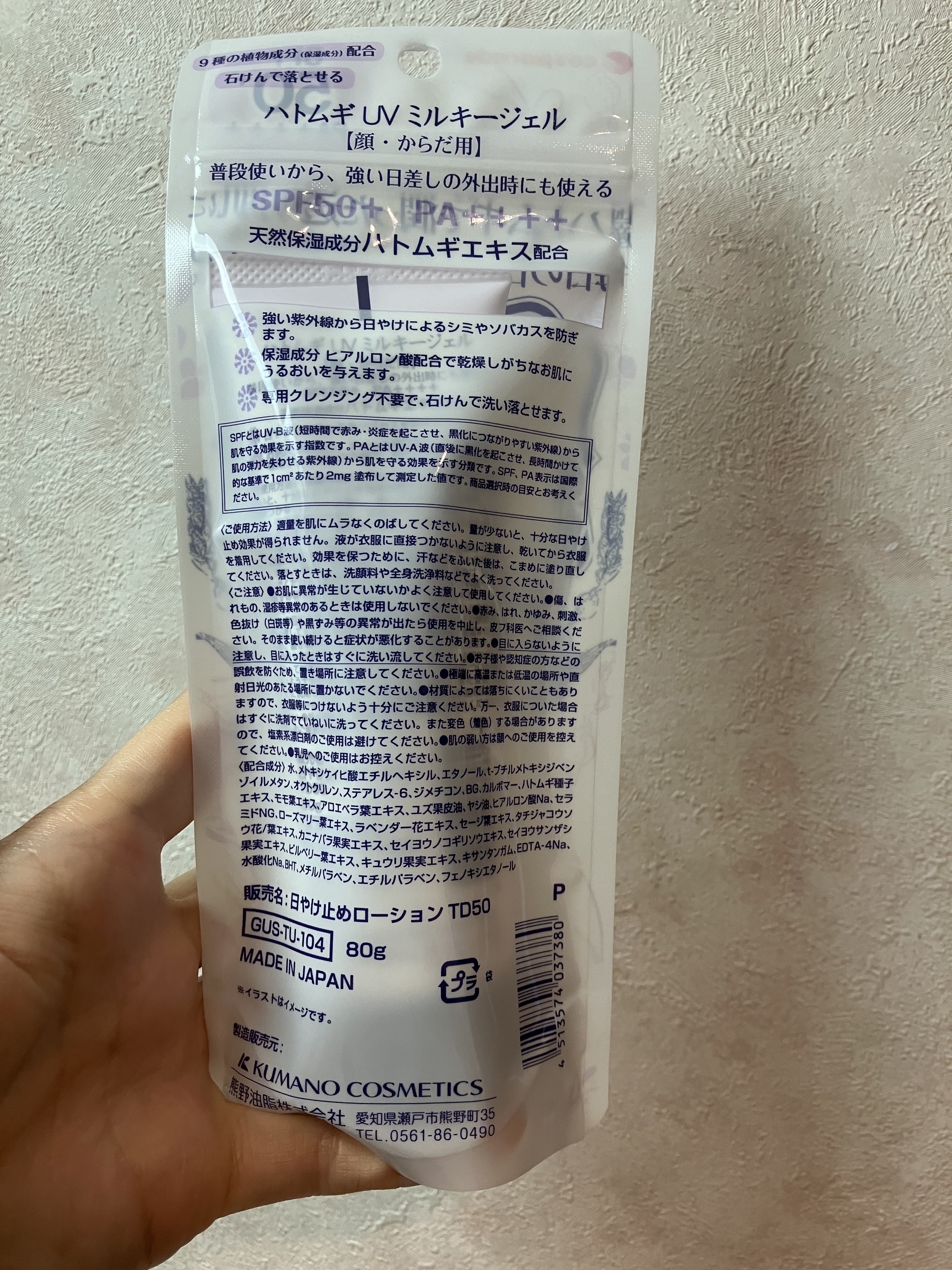 商品詳細情報KUMANO COSMETICS ハトムギUVミルキージェル