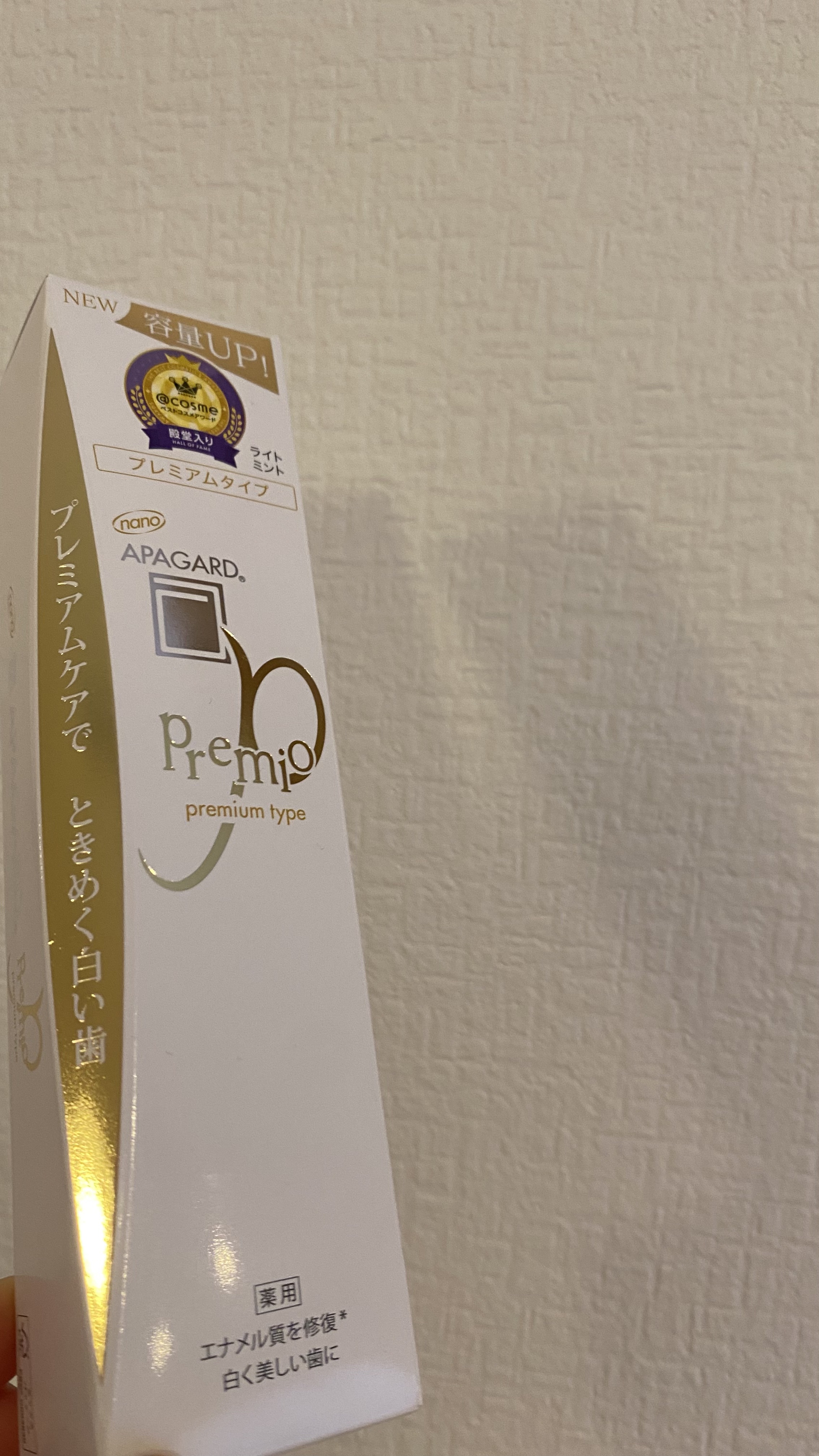 - 【医薬部外品】 独自成分「薬用ハイドロキシアパタイト」がエナメル質を整えてむし歯を予防。アパガードはエナメル質の健康を保つことで自然な白い歯に導く美白歯みがきブランド。アパガードプレミオは「薬用ハイドロキシアパタイト」を高配合(スタンダードタイプ比)。プレミアムケアでときめく白い歯に。 <ライトミント> ●サンギ独自の薬用成分ナノ粒子「薬用ハイドロキシアパタイト」を高配合したプレミアムタイプ。※Mプラス、スモーキン比 ●歯の再石灰化率、白色度もアップ。 ●歯垢を吸着除去し、歯のエナメル質の目に見えない傷を埋め、ミネラル欠損部(初期むし歯)を再石灰化するナノ<mHAP>の3つの働きで、むし歯を予防。 ●パール成分(加水分解コンキオリン液)配合。 <エクストラミント> ●強めのミントがお好みの方におススメ!ミント強めの「エクストラミント」フレーバー。 ●サンギ独自の薬用成分ナノ粒子「薬用ハイドロキシアパタイト」を高配合したプレミアムタイプ。※Mプラス、スモーキン比 ●歯垢を吸着除去、エナメル質表面の目に見えない傷を埋めてなめらかに、エナメル質から溶け出したミネラルを補給(再石灰化)する、という薬用ハイドロキシアパタイトの3つの作用でむし歯を予防。 ●パール成分(加水分解コンキオリン液)を追加したブライトニング処方