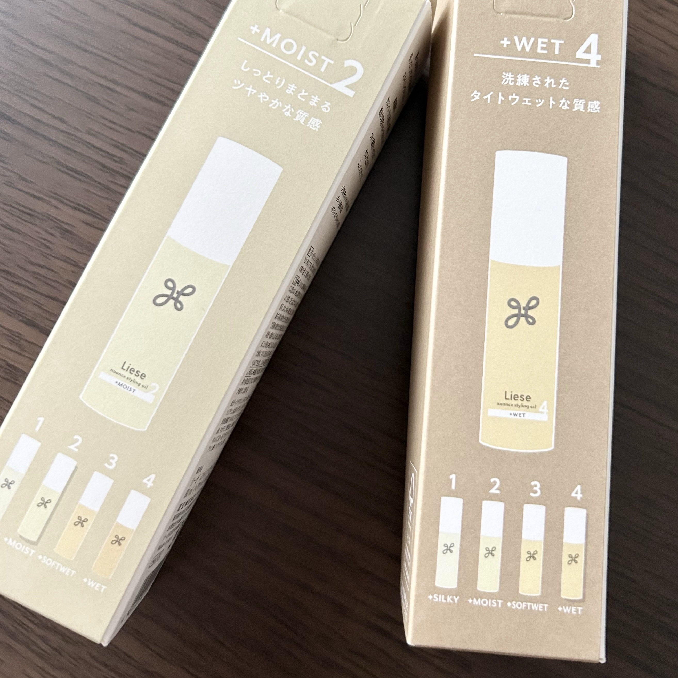 シルキー、モイスト、ソフトウェット、ウェットの4種類展開のヘアオイル🫧 保湿成分としてホホバオイルなどが配合されています✨ 程よくまとまりもいい3番がお気に入りです🥰
