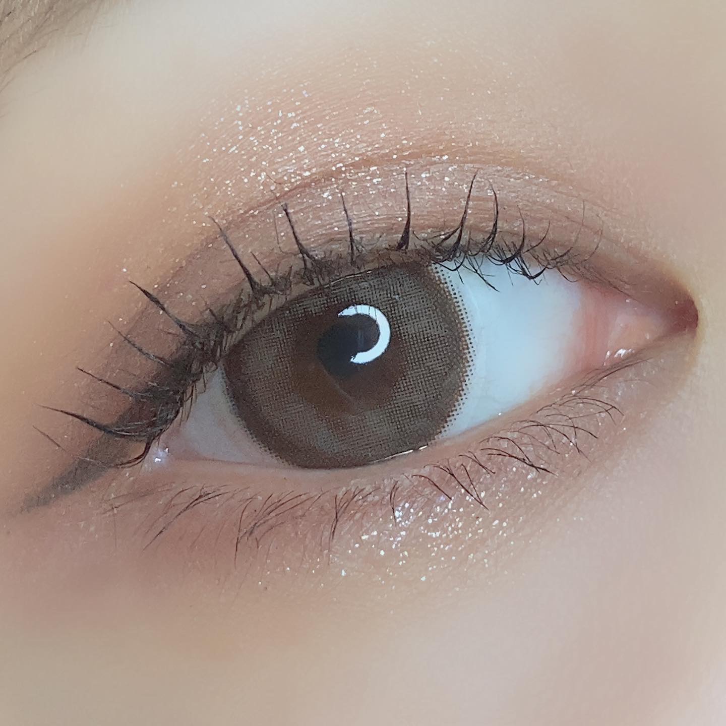 細フチが印象的なミルキーチョコカラコン🍫🍼 黒い瞳の私の場合、とっても自然な茶目に発色!すごくナチュラルで小さめのサイズ感と相まってかなりバレにくいかなと思います✨ ふわっとしたデサインのチョコカラコン🍫♥ ソフトな雰囲気を演出してくれます☁ だけど暗めの色のフチでナチュラルながらデカ目効果もあるかなと思います(˶´ᵕ`˶) 橋本環奈ちゃん風の瞳になれるシリーズなのでこちらも色素薄い系メイクにGood👌🏻🤎