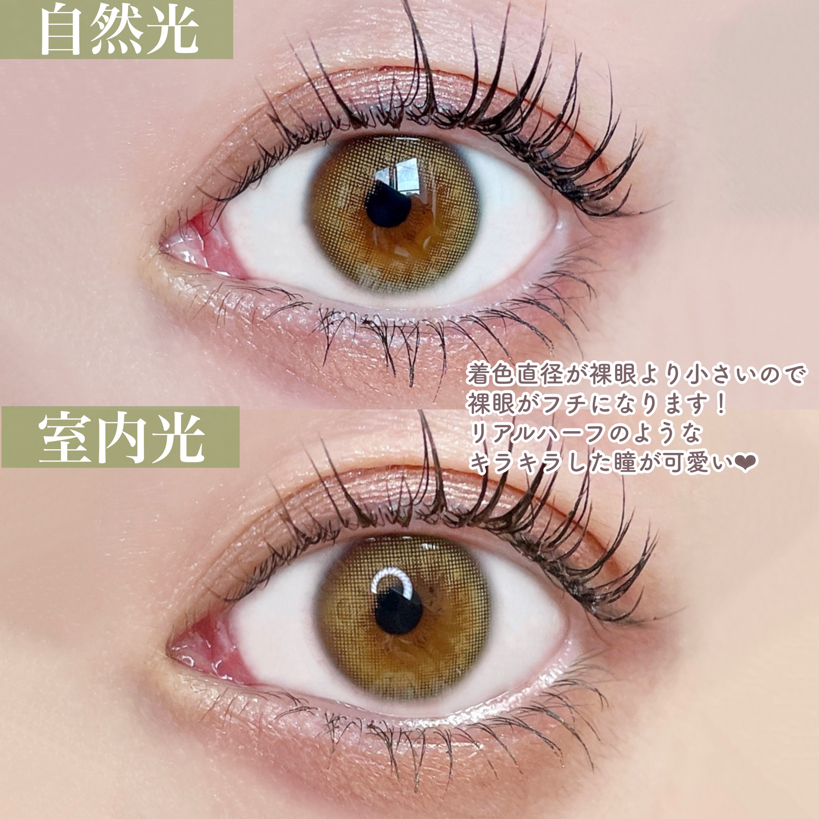 神秘的なハーフっぽオリーブカラコン🍀 お人形さんみたいなきゅるんとした目元になれるカラー🧚♂ 着色直径が小さめだからこそ、ナチュラルに馴染んでくれるのでハーフカラコンを初めて試す方にも挑戦しやすいカラー✨ オリーブはお洒落な色合いなので、ファッションのひとつとしても取り入れてみてね🪄