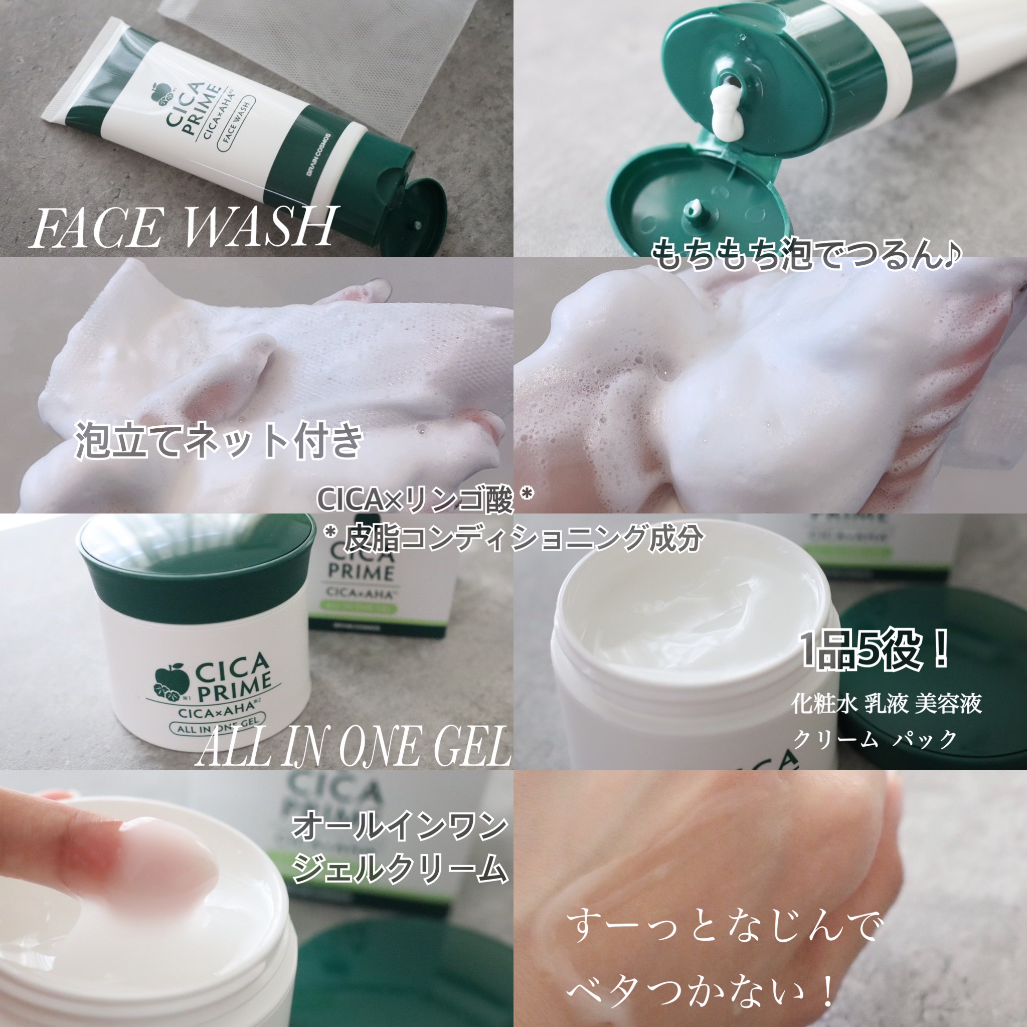 ツボクサエキス(整肌成分)や AHA (りんご酸)(皮膚コンディショニング成分)など 植物エキスを贅沢に配合💚 1品5役のオールインワンジェル🤍 ・化粧水 ・乳液 ・美容液 ・クリーム ・パック 精油ユーカリ葉油で香り付けされていて、 さわやかさと爽快感が😌🌿 プルプルのジェル状で、 馴染ませていくと吸い付くような もちもち肌に😍 季節の変わり目によってお肌がゆらぎがちな方や乾燥が気になる方・敏感肌の方にもオススメです😌