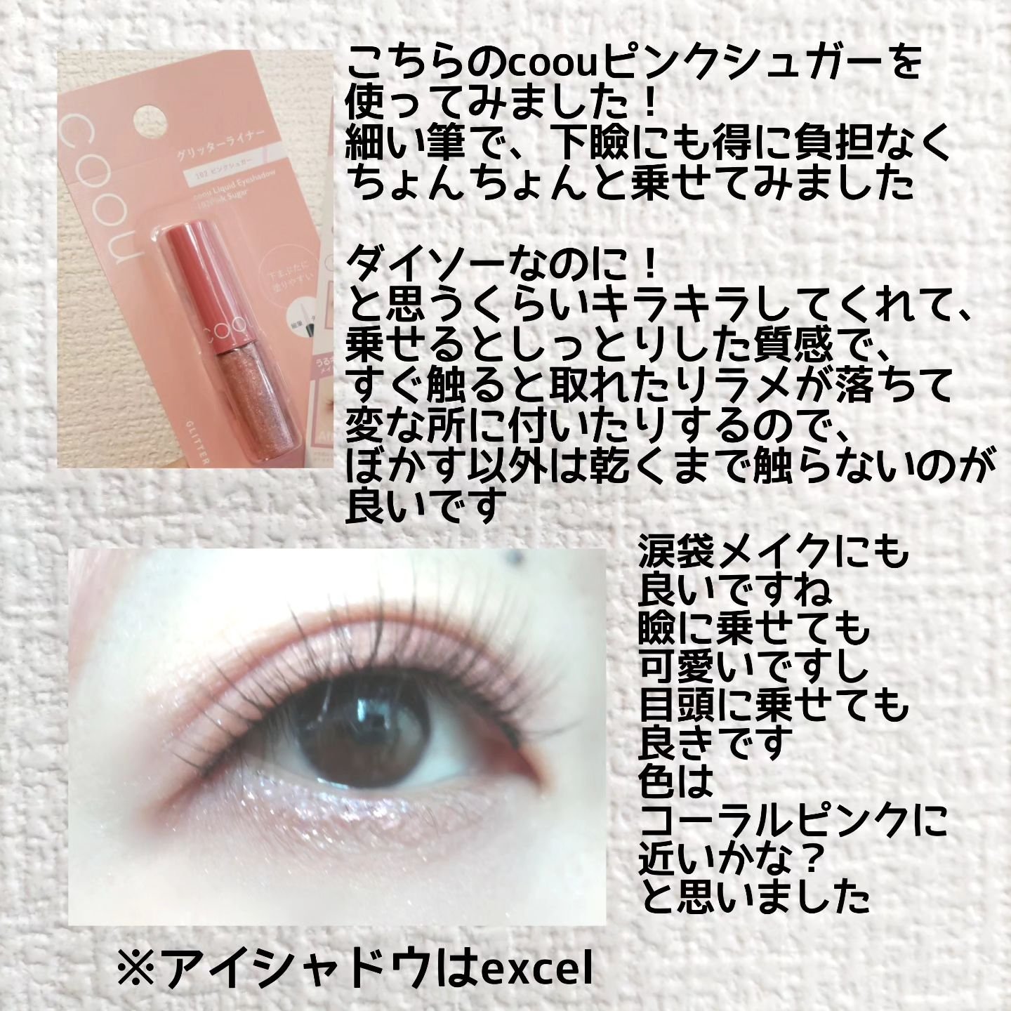 【追記】描けました🙂#グリッター#100均コスメ#プチプラコスメ#アイメイク#ラメ#DAISO#DAISOコスメ#ダイソーコスメ #グリッターライナー#coou#coouグリッターライナーcoouグリッターライナー101プラチナゴールドラメの...