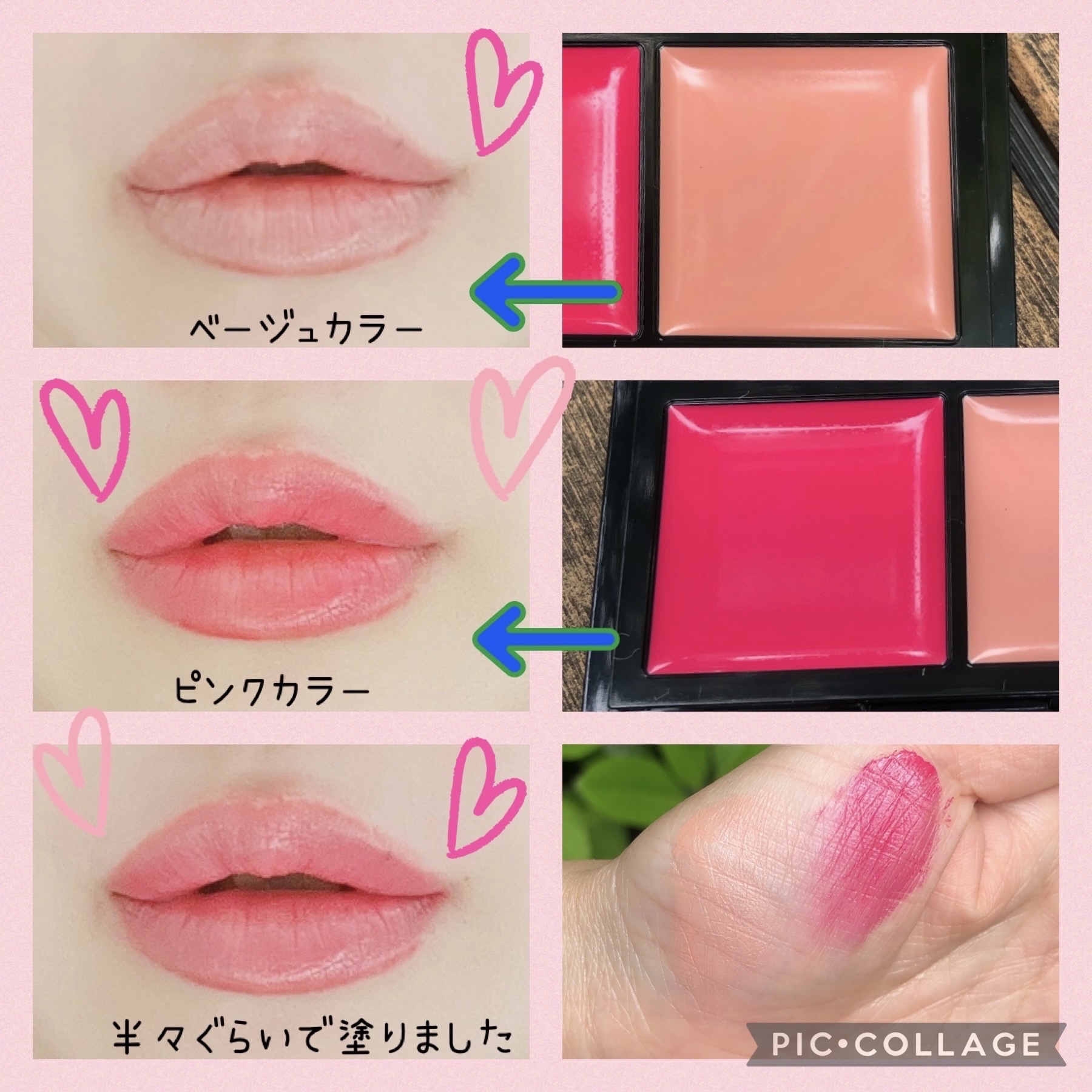 レッドのカラーを塗ってからベージュを好きな量重ねて塗るリップです!! ベージュカラーを塗る量によって色味が変わるので自分だけの色が作れていいなあと思います❣️ ただブラシで塗らないといけないから少しめんどくさいなあと感じました💦