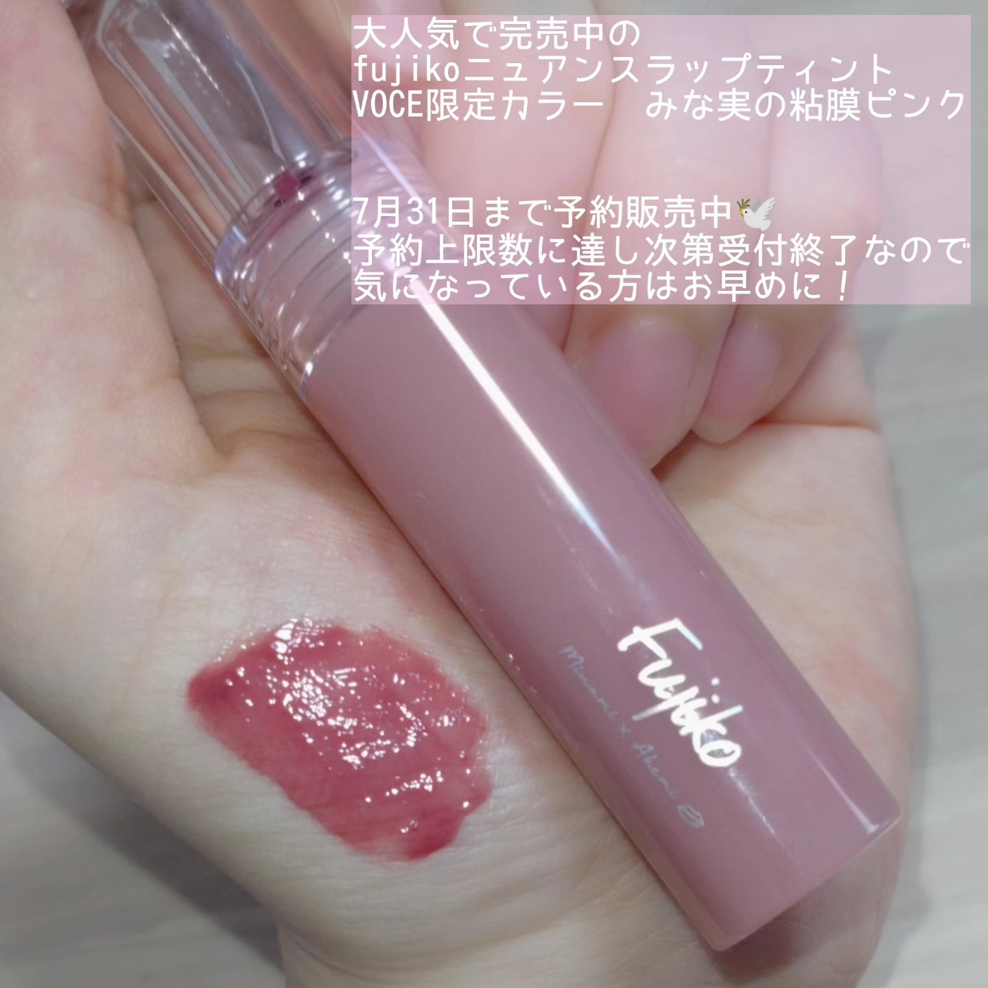 Fujikoニュアンスラップティント08苺ミルクのピンク🩷既存色の01VOCE限定カラーと比較すると明るくまろやかなカラーでした!明るさが得意なイエベ春の人にぴったり合いそうです🌼🌷🪻#イエベ春#ニュアンスラップティント#fujiko#フジコ...
