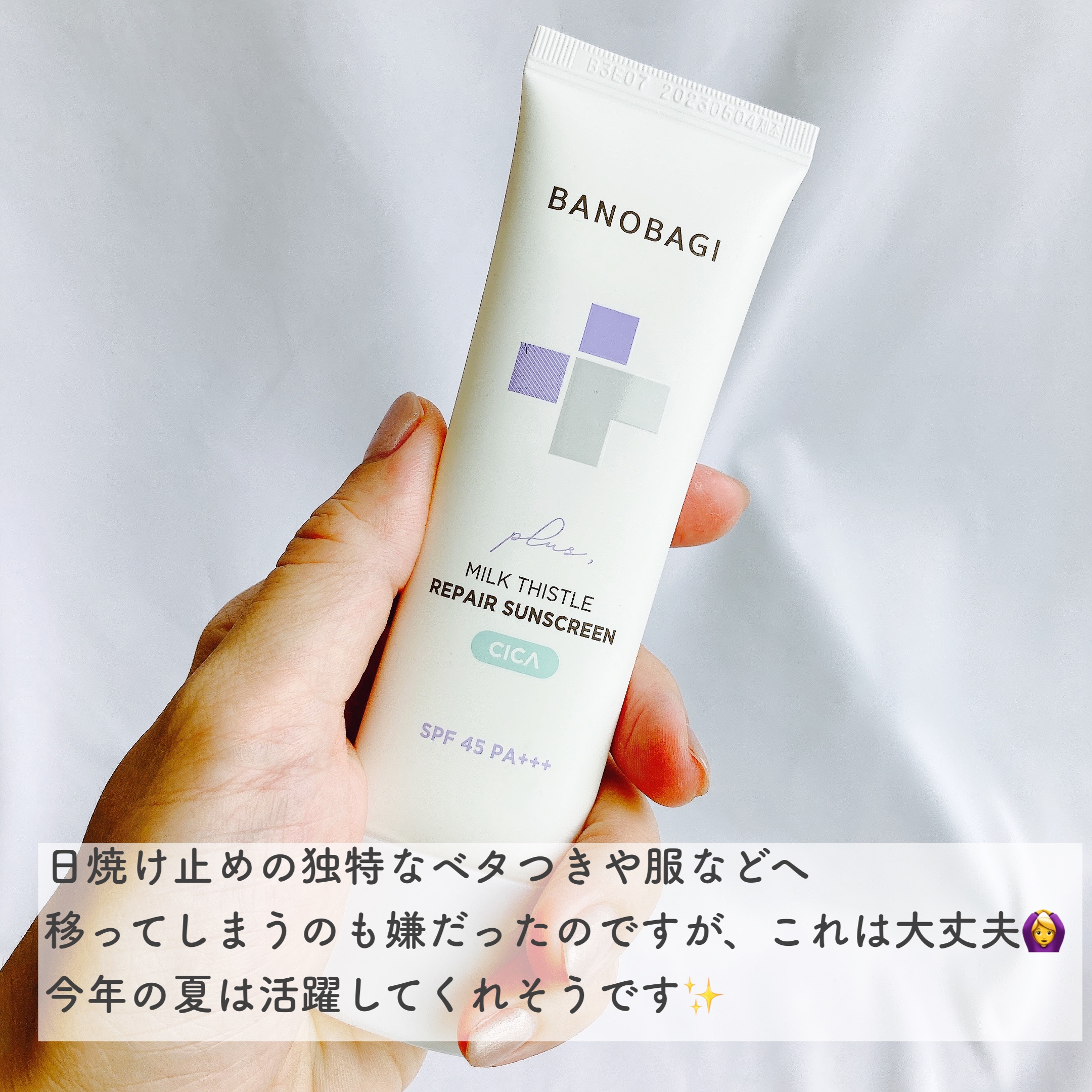 BANOBAGIバノバギ💜💙『ミルクシスルリペアシカサンスクリーンプラス』MILKTHISTLEREPAIRSUNSCREENCICAplus【SPF45・PA+++】BANOBAGI様からモニタープレゼントキャンペーンにて🎁いただきました🐦...