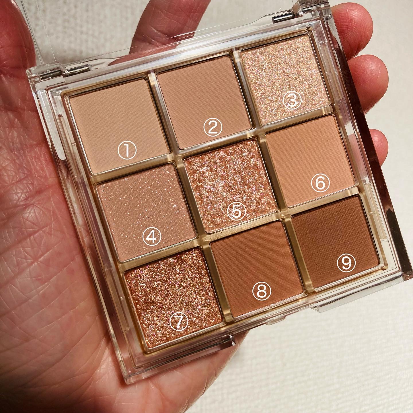 マットは肌に溶け込むような粉質でボソボソしません! シマーのしっとりした粉質も密着してくれて好き!!! 1番キラキラなのは右上のラメですね🍑💓でも粒が大きくないので、大人も使いやすいラメだと思います🥰 どの色使おうか迷うけど、どれ使っても本当可愛くて、自分が桃になったかのような🍑(笑)多幸感あふれるパレットです💘