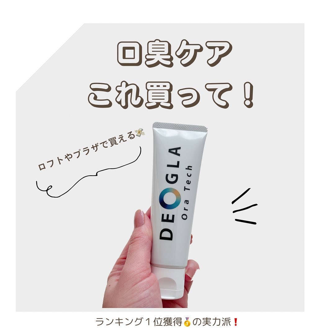 口臭ケアに特化した独自成分の清掃剤DEOGLAが配合されている歯磨き粉です。 香り成分でにおいをカバーする方法ではなく、銅の力を利用し口臭の原因である汚れをダイレクトに除去してくれるようです✨ 辛みの少ないマイルドなミント風味🌱香りでにおいをカバーするわけではないので使用後は、においが残るわけではなく口の中全体がスッキリ、さっぱりする感じです。