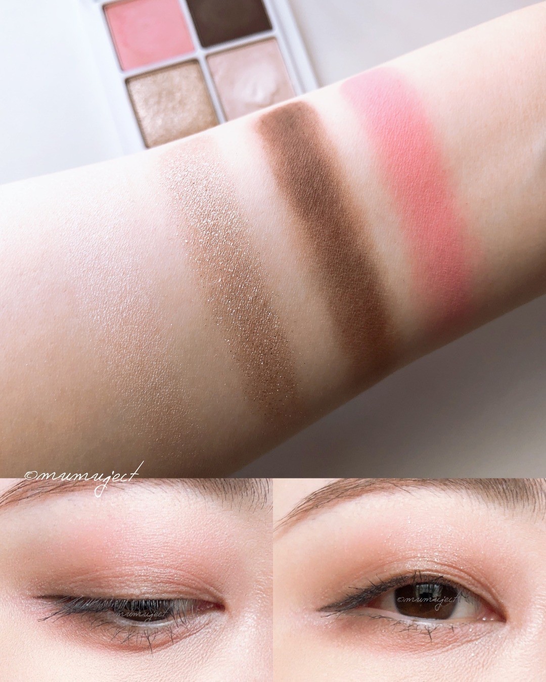 パレットだけ見るとピンクブラウンでピンクグレージュになる気はしない。でも、まぶたに重ねるとちゃんとピンクグレージュ… ラメもキレイだし、多くの方がその魅力にハマるのが分かる✨️ 色味的にも普段使いもしやすいと思います🙆