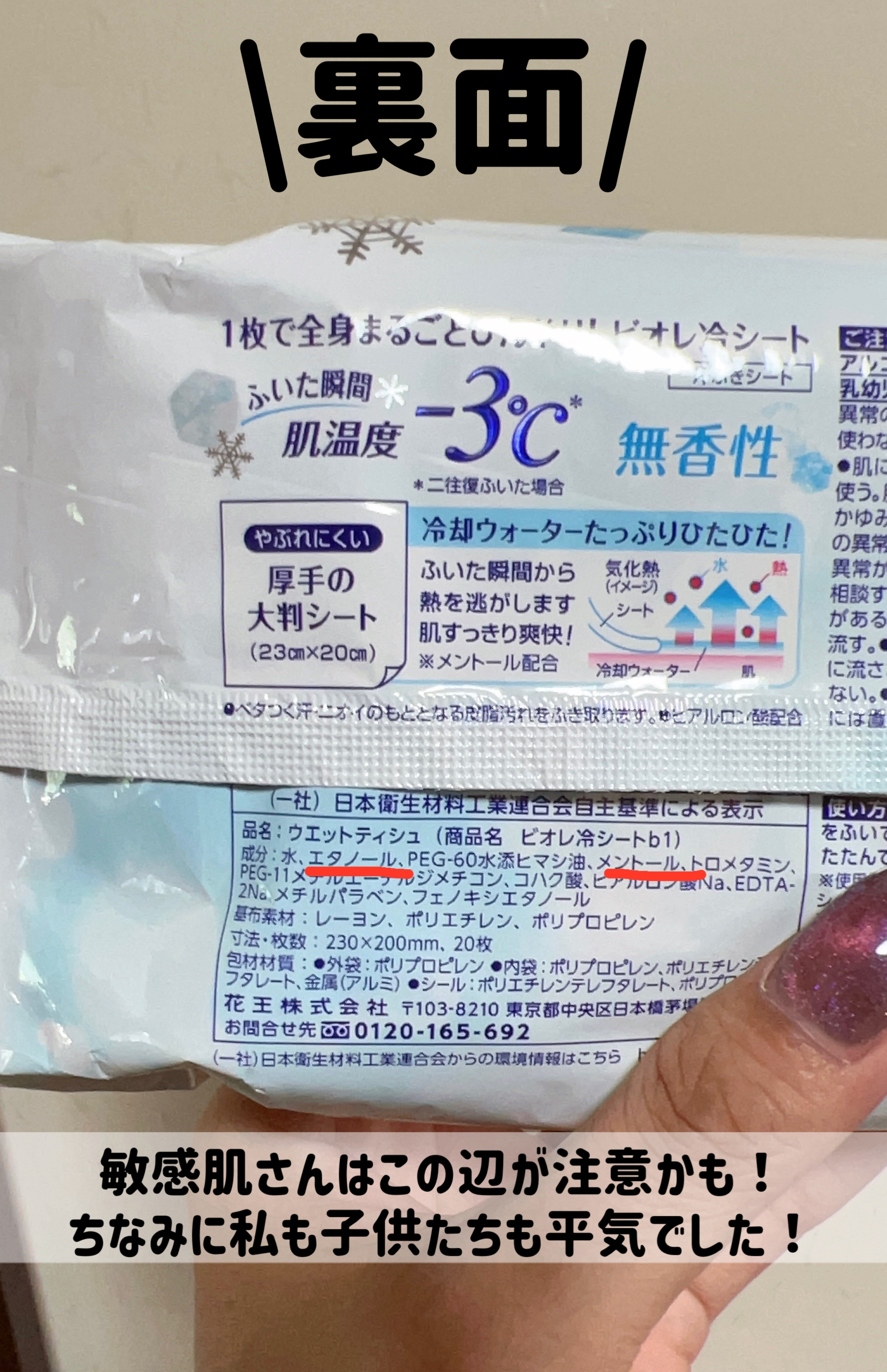 - ふいた瞬間肌温度-3℃*1。 冷却ウォーターたっぷりひたひた!ふいた瞬間から熱を逃がします。 1枚で全身ふける!やぶれにくい厚手の大判シート*2。 ひんやり感続く!メントール配合。 ●ベタつく汗・ニオイのもととなる皮脂汚れをふきとります ●天然コットン使用でやさしい肌触り ●ヒアルロン酸配合 ●無香性 *1 二往復ふいた場合 *2 大きさ当社比3倍