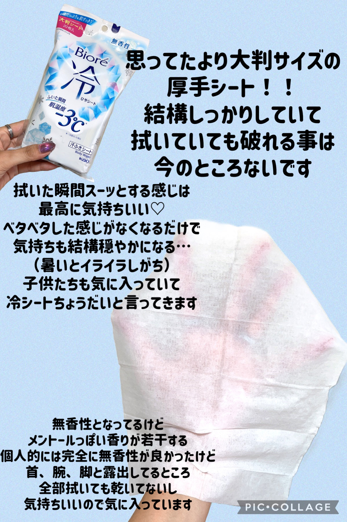 ひんやり気持ちいい〜☺️夏は必ずポーチにイン!【使った商品】ビオレ冷シート無香性 20枚入り¥481【商品の特徴】ベタつく汗・ニオイのもとをすっきりふきとり、ふいた瞬間肌温度-3℃の汗ふきシート。メントール配合でひんやり感がつづきます。1枚で...