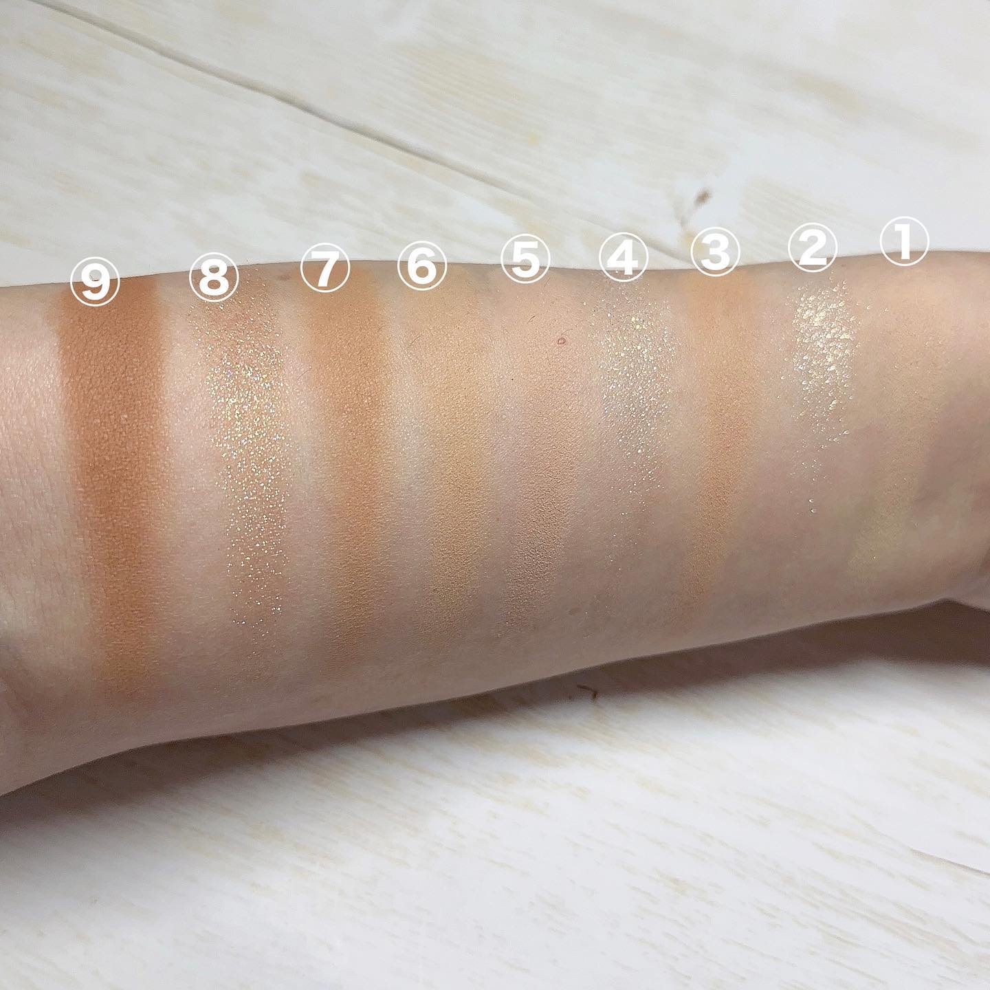 テクスチャーはサラサラだけど、飛び散るわけではなくて吸い付いてくる感じでした。 グリッターは、湿式のウェットさと押すとムニっとして、ちょっとゼリーテイストな気がします。ギラギラすぎなくて使いやすかったです。 ⑥はピンクも混ざっていてとても可愛い。アイスクリーム屋さんのストロベリーチーズケーキみたいな🍓これも、白すぎなくて肌馴染みの良い白系なので使いやすかったです。