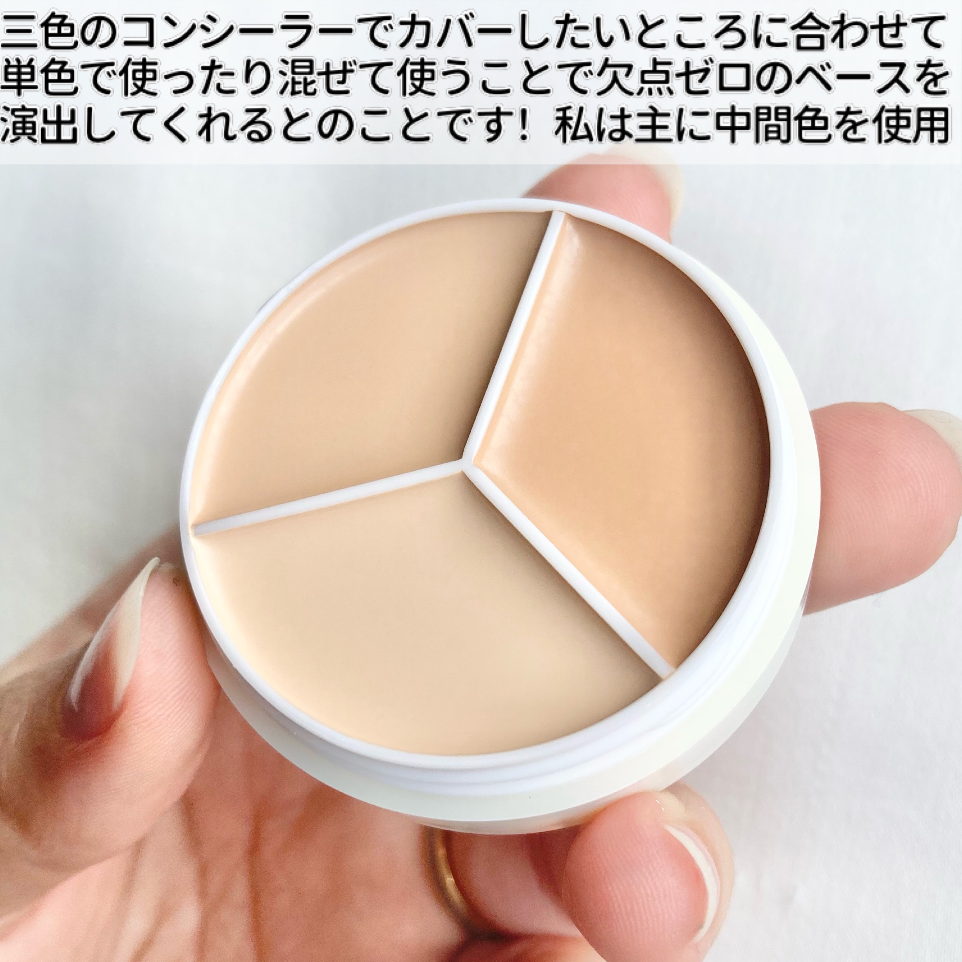 カバー力抜群のコンシーラーをご紹介🌿 見た目が可愛いカバー力抜群のコンシーラー!3色入っていて使い分けも◎ テクスチャは想像より伸びが良く◎ 潤い感がありあまり乾燥は気になりませんでした!