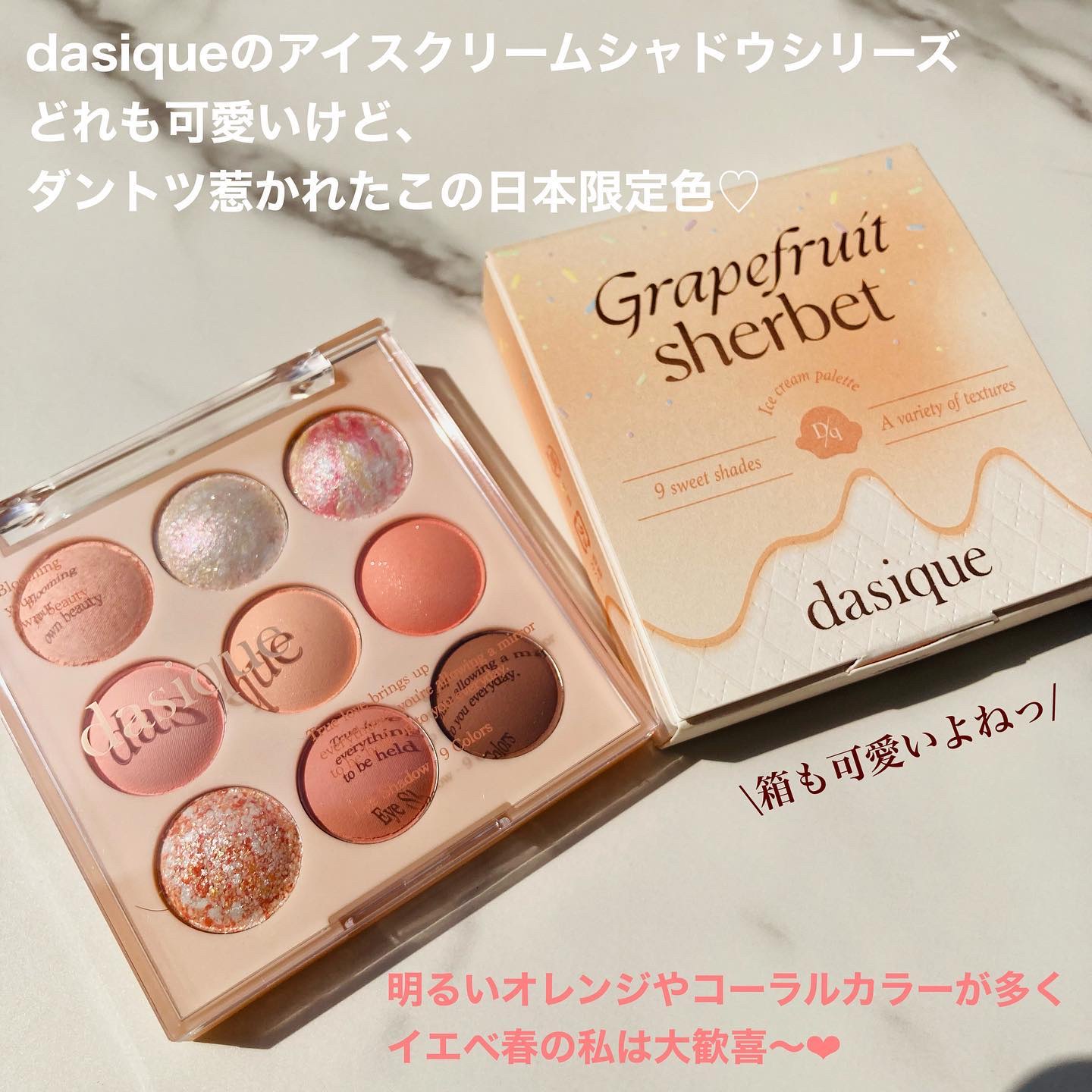 - 【舞台上のバレリーナの繊細な動きと抑制された美しさを再解釈した、dasiqueならではのバレエコアコレクション】 シマー、マット、パールなどバリエーション豊かなテクスチャーで、軽やかにまぶたにフィット。粉飛びしにくく、指先で簡単に美しい仕上がりが叶います。 柔らかいピンクベースから深みのあるシェードまで揃い、1つのパレットで普段使いのデイリーメイクから特別な日の華やかメイクまで幅広く楽しめます。 - 活用しやすいテクスチャーとカラーバリエーションで毎日新しいムードを完成してくれるデイジーク シャドウパレット。 デイリーメイクからポイントメイクまで演出が可能。 感覚的な9種類の色味でムードUP! 多彩でウェアラブルなテクスチャーで高い活用度!