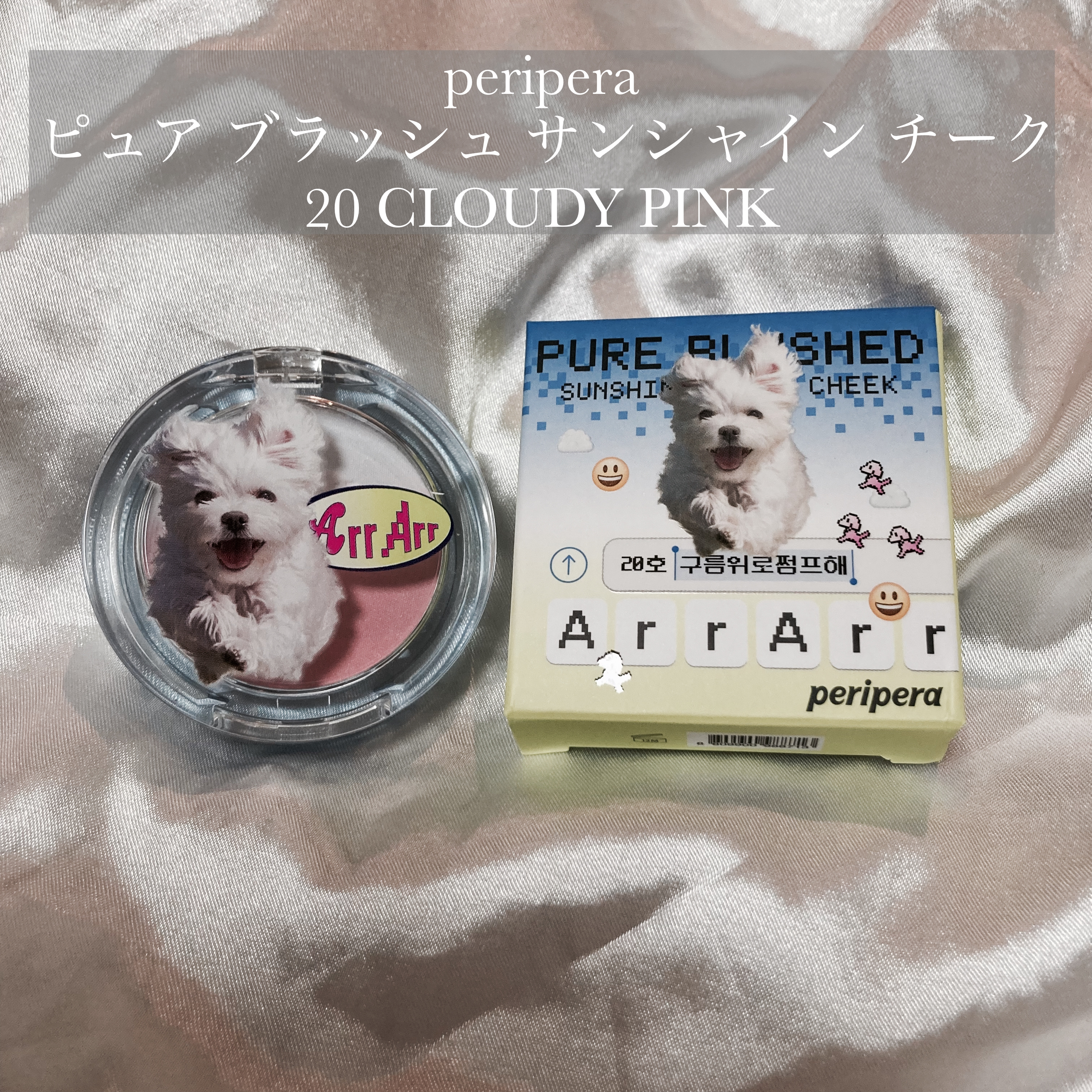 このティントのシリーズはほんとに落ちにくくてオススメ! とんでもなく可愛いマルチーズちゃんのスマホグリップ付きでした🐶 頬につけた時にラメがチラチラ光って可愛すぎる……🥰 色味もふんわり発色で美少女が付けてそうな色味 ほんのりピンク色でキュートで儚げなお目目が作れる🥹