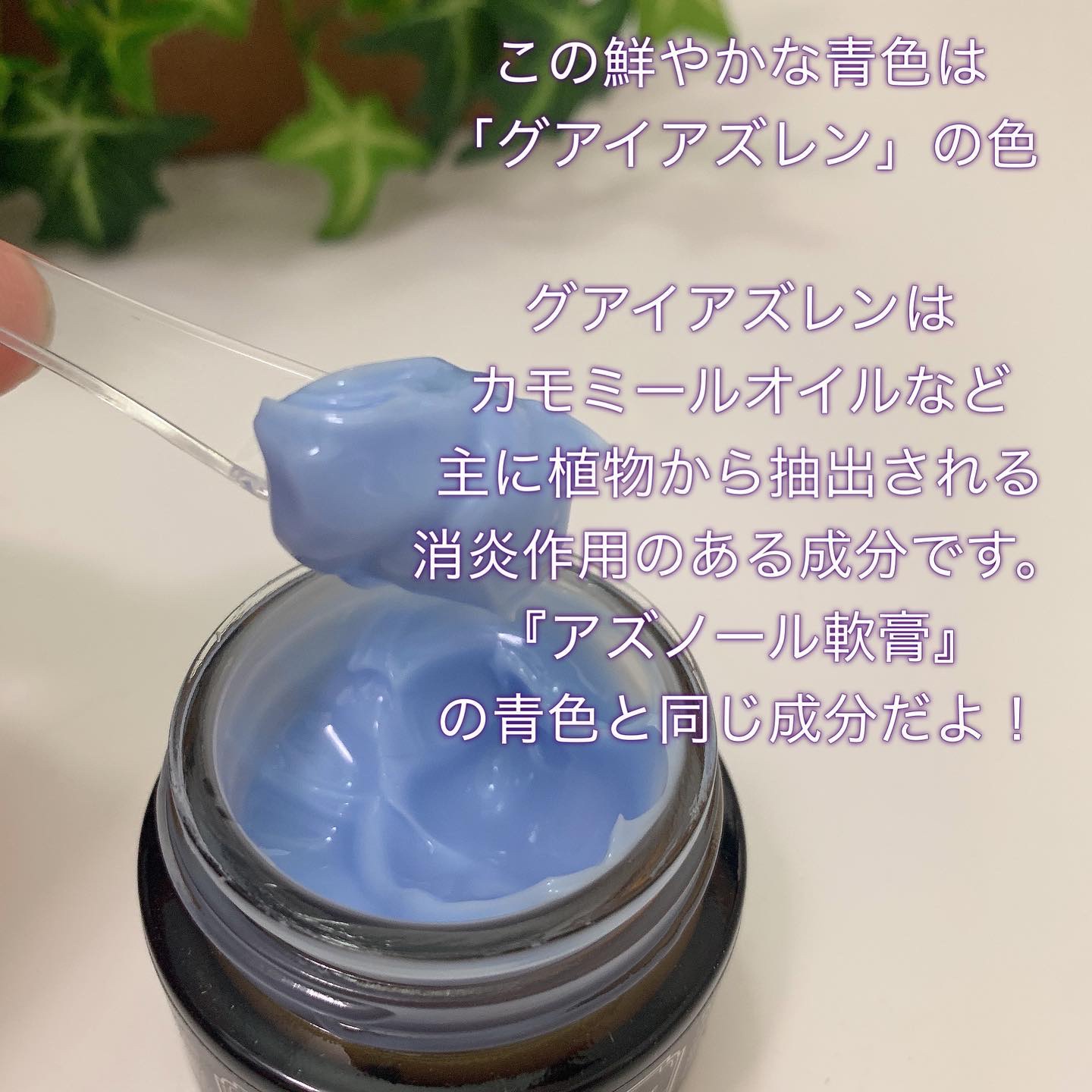| 植物成分のグアイアズレンの色の綺麗な青色のクリーム。敏感な肌が感じる多様な刺激をケア | 詳細を見る | |