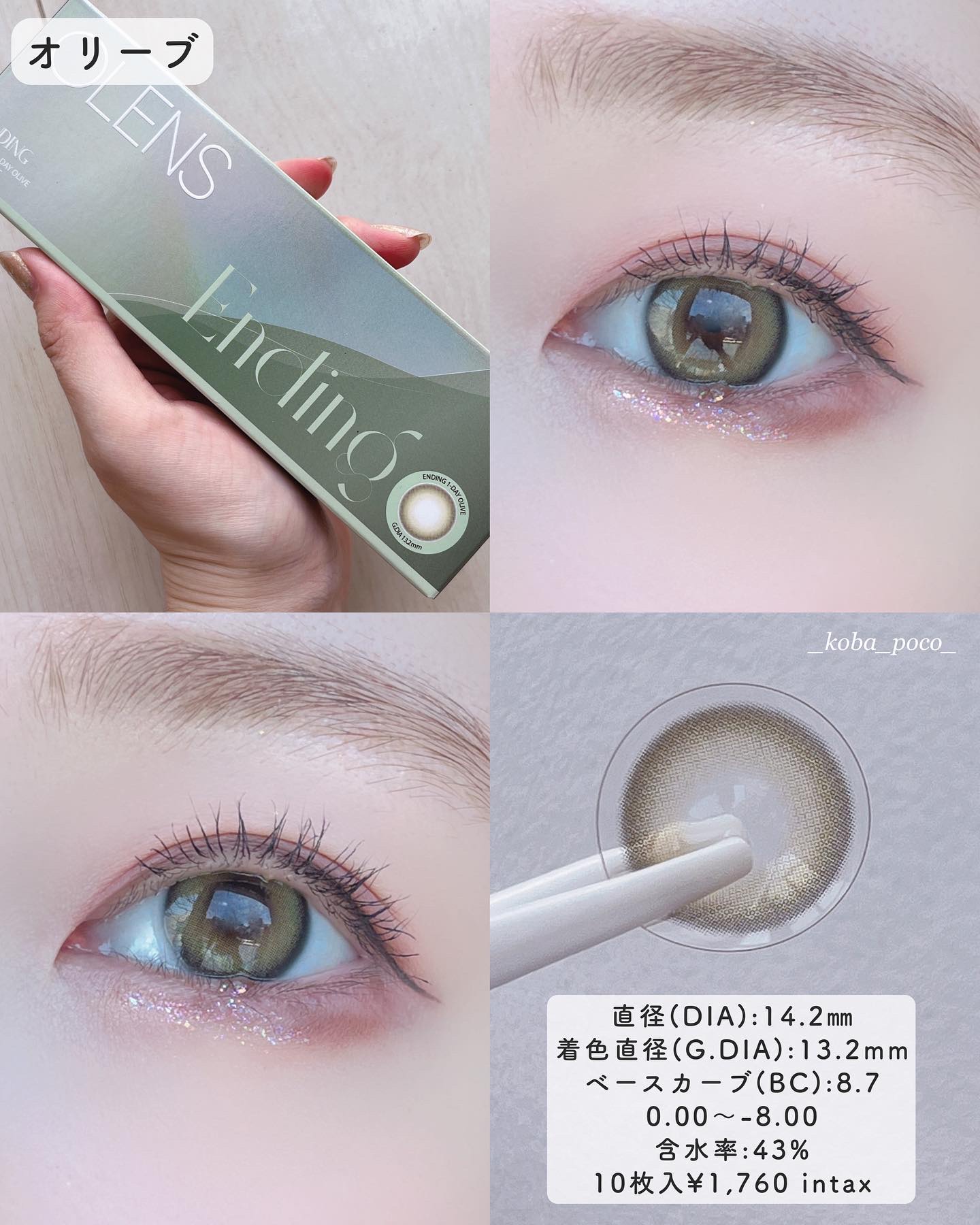 【OLENS🌙Endingシリーズ全色比較🌿】#OLENS#POPLENS▷じゅわっとグラデーションでリアルハーフアイに!#Ending1day(1箱10枚入)DIA:14.2mm着色直径:13.2mm含水率:48%■Olive🫒オリーブとイ...