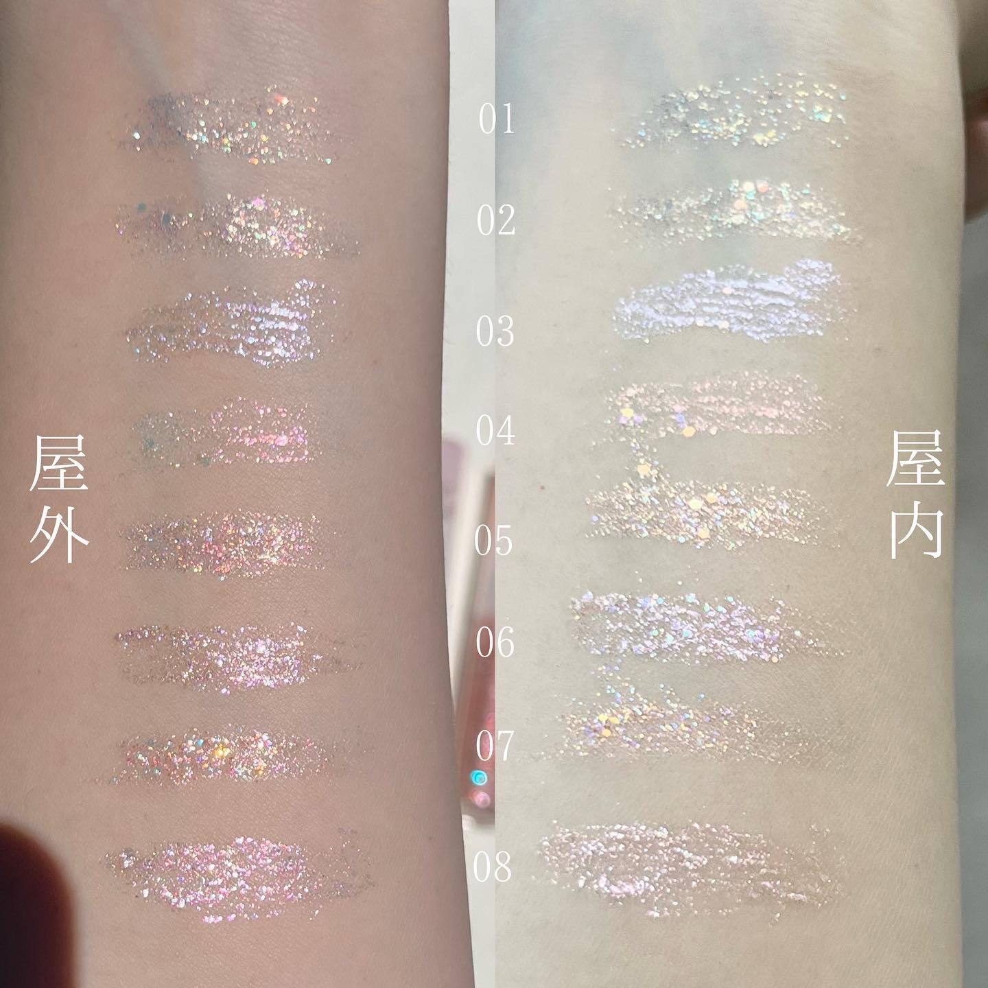 - リアルジュエリーパウダー配合でさらに神秘的で多彩な輝きを演出。 ウォーターベースでなめらかに目元に密着・すっきり長持ち。 ◇01 トゥインクルスター ピュアなホワイトベースにグリーン&オレンジのカラーが神秘的に輝くラメグリッター。 ◇02 スイートドリーム 愛らしいピンクをベースにブルー&コーラルのラメ, オレンジの6角グリッターが輝きます。 ◇03 スターリットナイト 夜空に輝く天の川の様なシルバー、ゴールドのラメを組み合わせたシャンパン系のカラー。