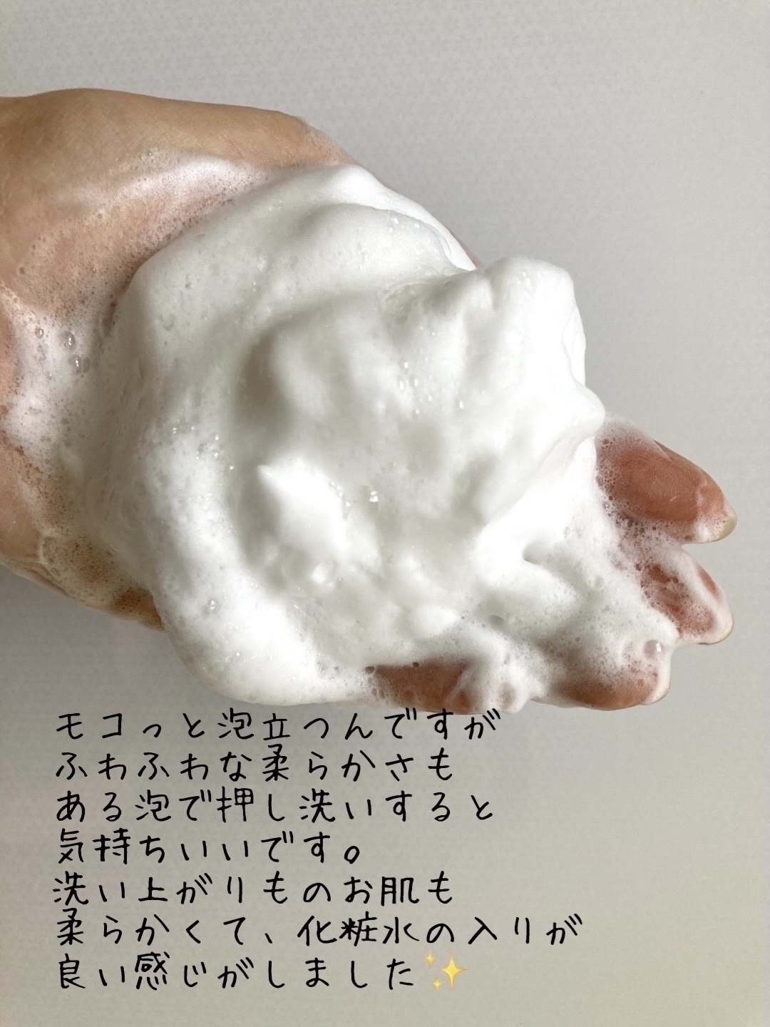 *使い心地ネットで泡立てると、硬めなモコモコ泡 ができます✨手から離れない感じです。水っぽくて、すぐにしぼむ様な泡は、私的に摩擦につながりやすく好きじゃないので、嬉しいです♪ *効果顔の汚れはスッキリ落ちる感じですが角栓まではとれないです。角栓の色がキレイになる感じです🤔 モコモコした泡で摩擦レスで洗える事やつっぱる事なく、スルンとした肌になる感じが良いなと思いました。