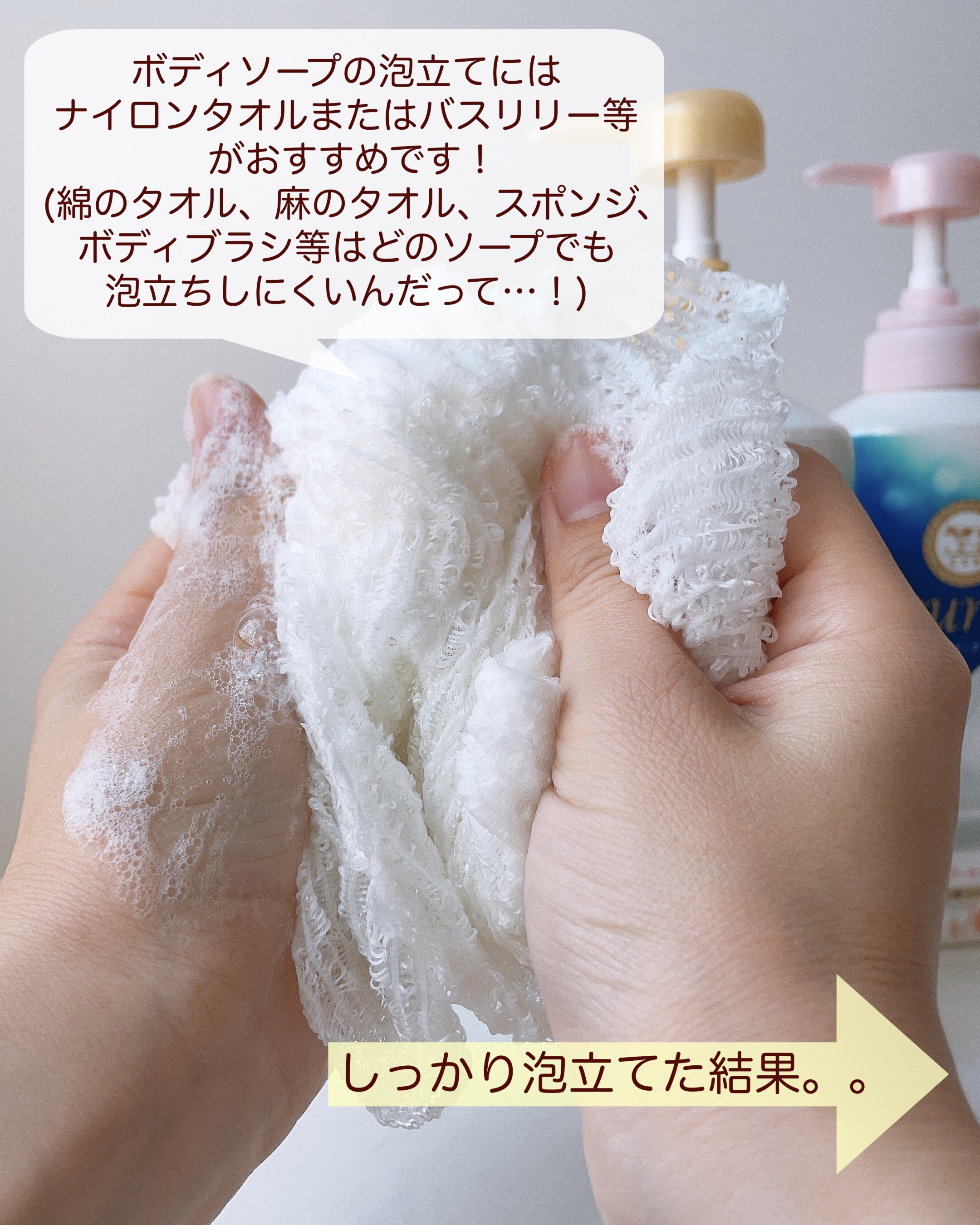 | 泡がしっとりなめらか濃密!! なのに泡切れも良くさらっと流れせてぬるつきも残らないのがうれしいポイントです♬ | 詳細を見る | |