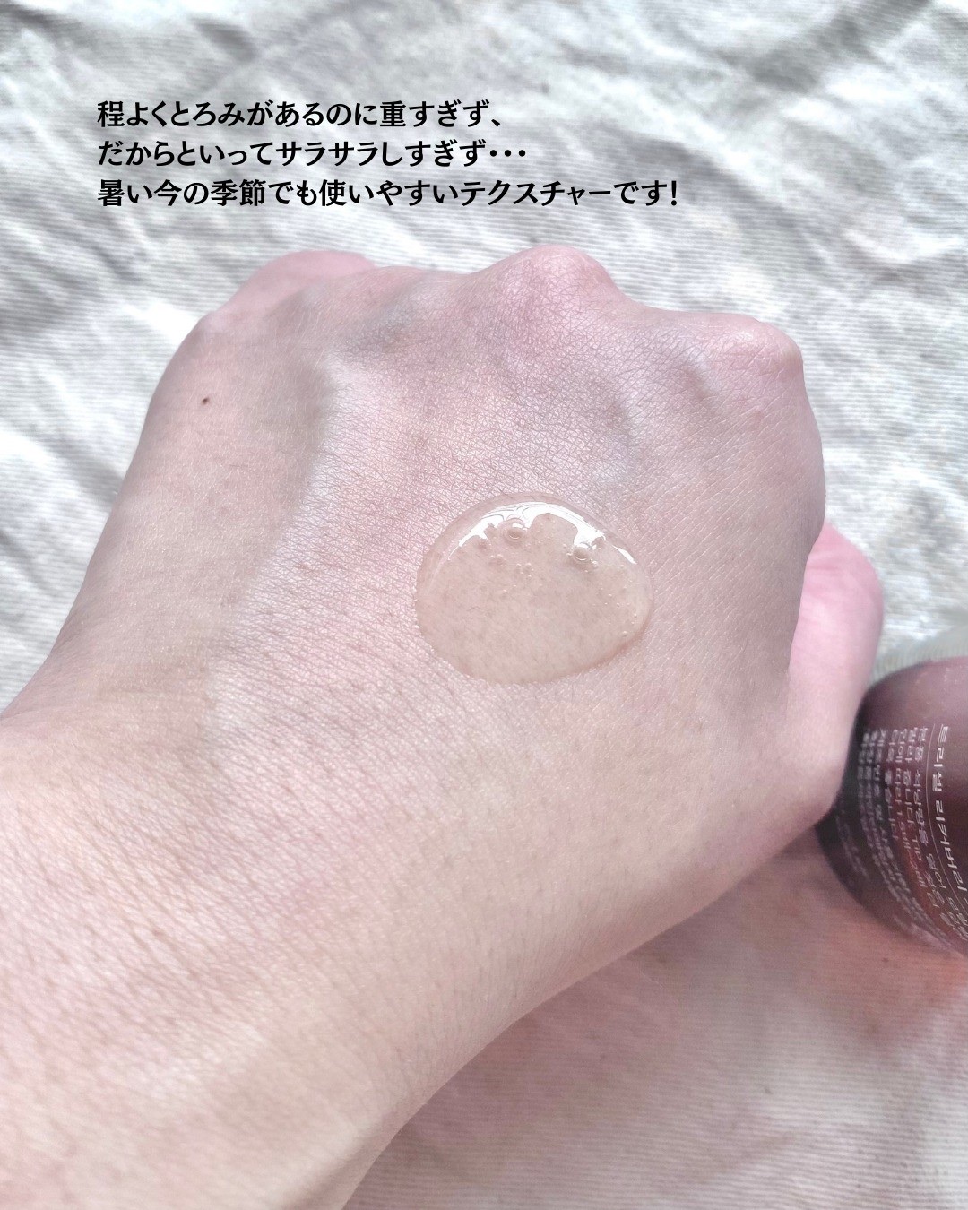 - 軽やかでサラッとしたテクスチャーでうるおいチャージし、ベタつきなくサラサラとした髪へ導くエッセンスです。