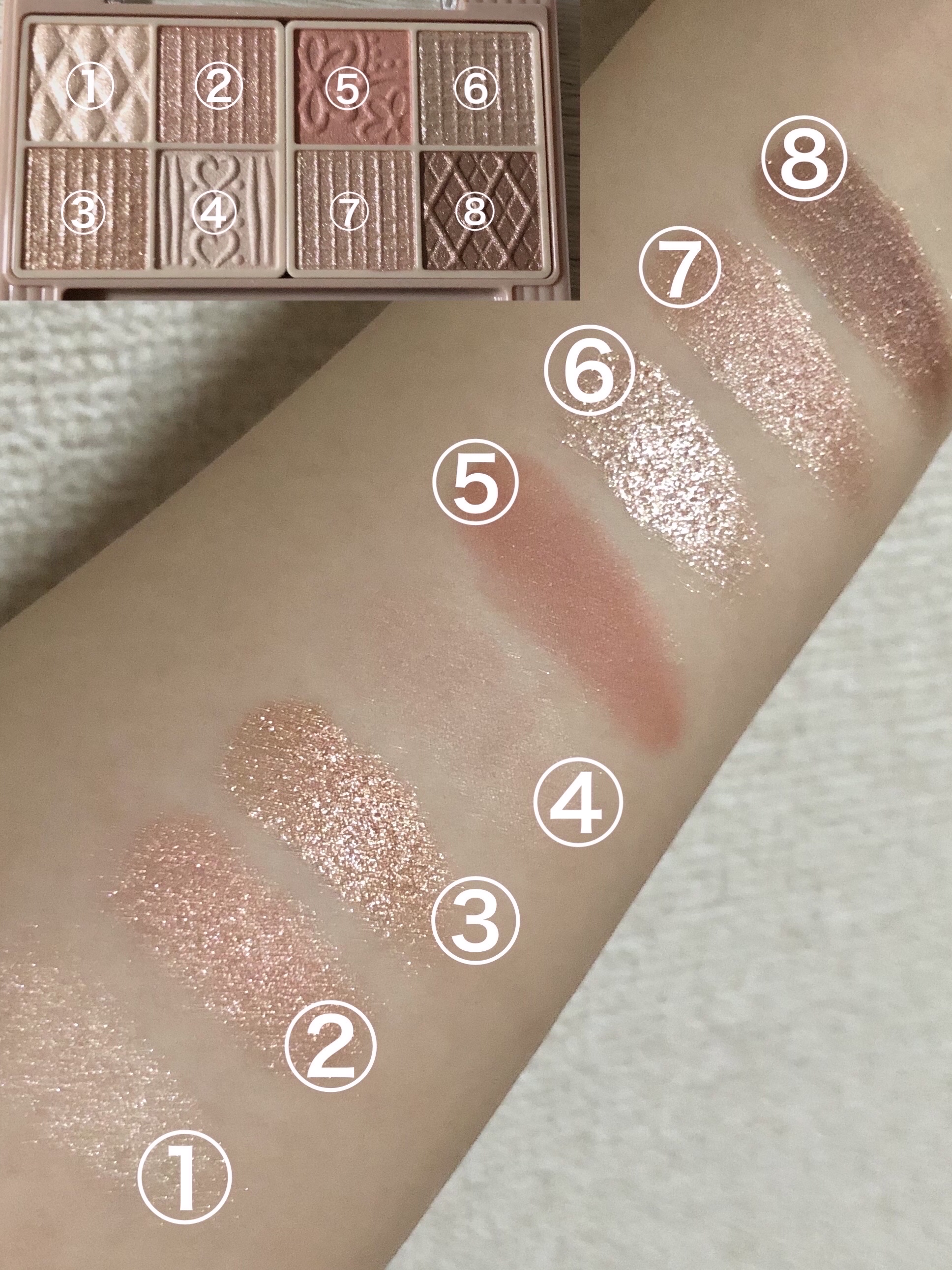 CANMAKEの多色パレット🌼 マット・パール・ラメ3つの質感があって気分によって何通りも使い分けができるし何より手のひらサイズなのが調度よい◎ 01と03がブルベさんにオススメなので持ってない方は是非チェックしてみてね🫰 シーン問わず使いやすい肌馴染み良しなピンクベージュ 03 ミニョンヌリボンやや青み寄りのピンクが多め大人な甘さのピンク
