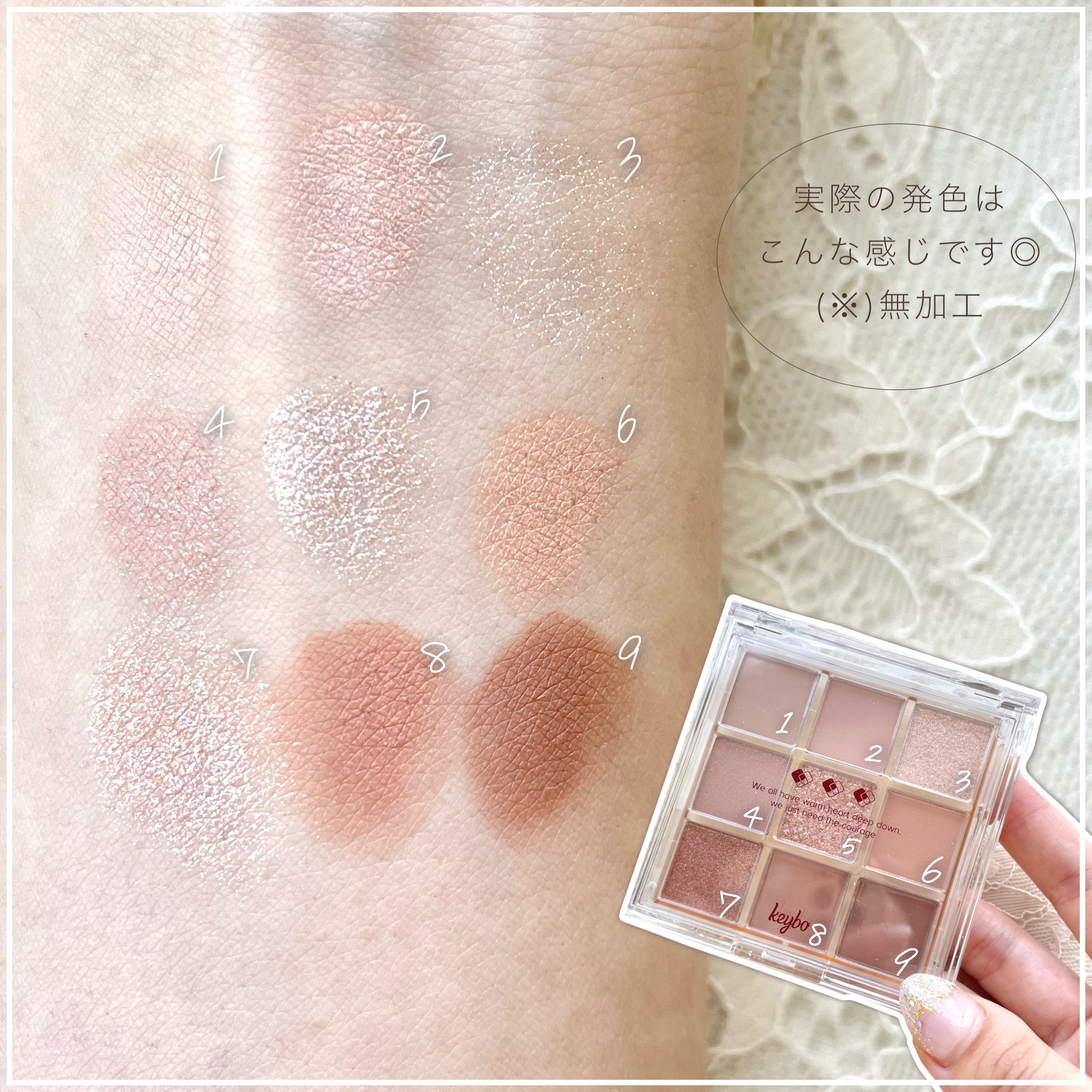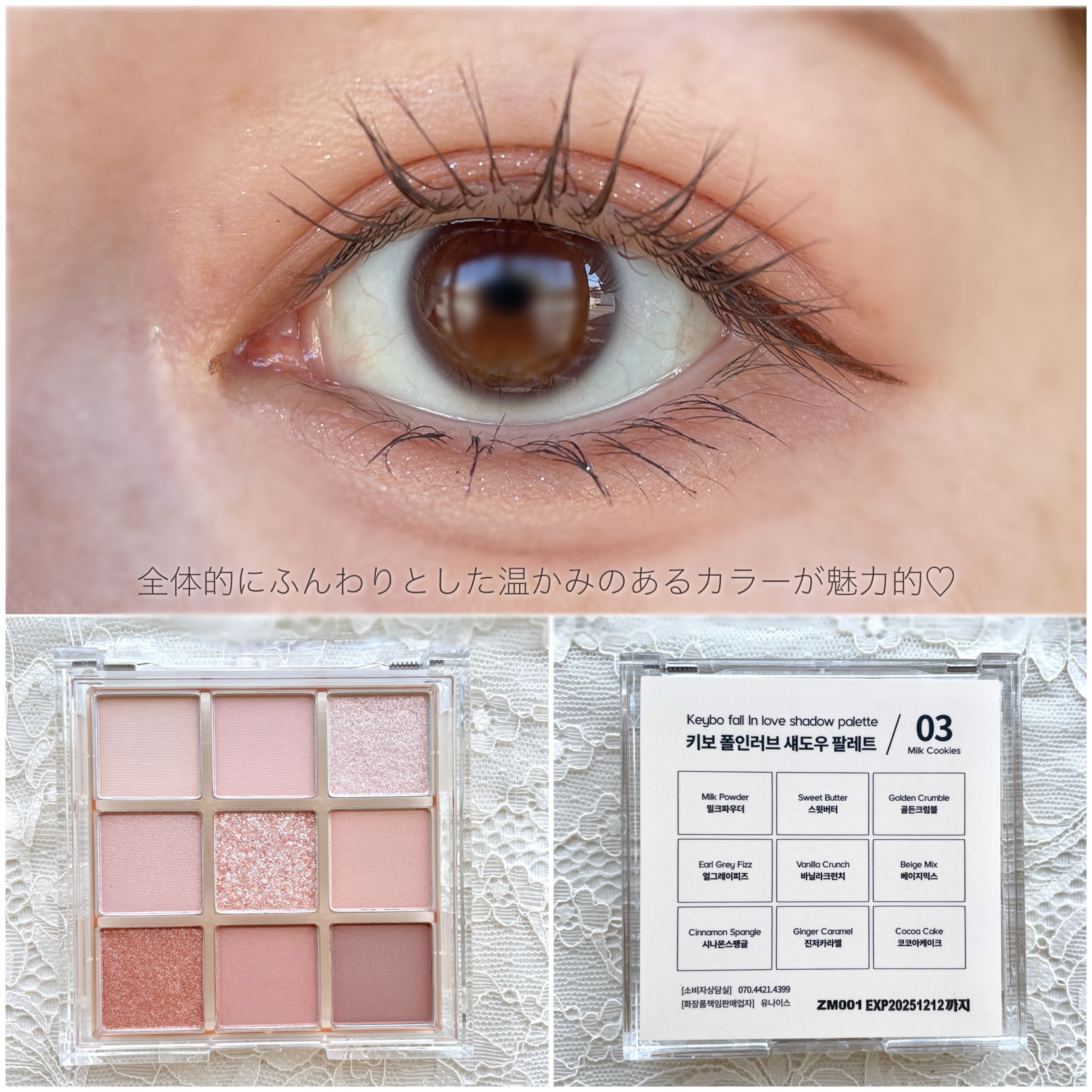 使いやすいカラーがお気に入り ☑︎パレットが可愛い♡ ラメが繊細で日常使いしやすい! 自然な発色なのでお仕事の時やおでかけの時にも✨ サラッとした質感で塗りやすく 二重幅に溜まりにくい所もお気に入り✨