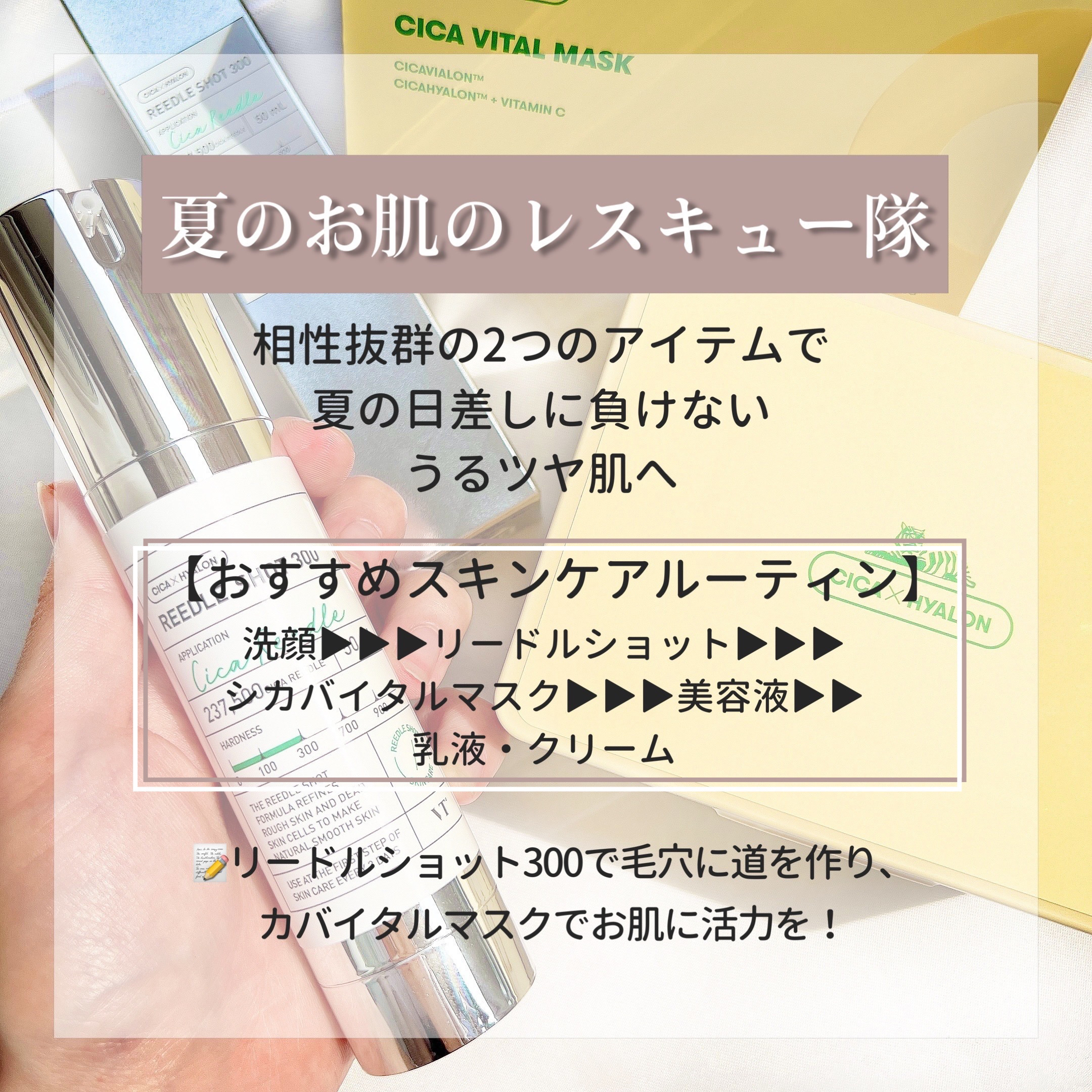 ありがたい個包装タイプ Qoo10だと大容量しかないので5枚だけ、個包装で欲しいならコンビニで! 薄いシートに美容液がひたひたで密着。スージングマスク→シカの薬っぽい香りバイタルマスク→柑橘系の香り 旅行やお試しにも。特にリードルショットは相性があるので試したい人におすすめ!