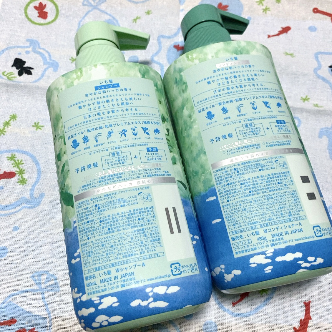 いち髪 シャンプー&コンディショナー涼やかな和ハッカの香りメントール配合でスッキリします🌱涼やかな和ハッカの香り🌱スーパーで1000円以下で購入しました!#いち髪 #涼やかな和ハッカの香り#冷感...