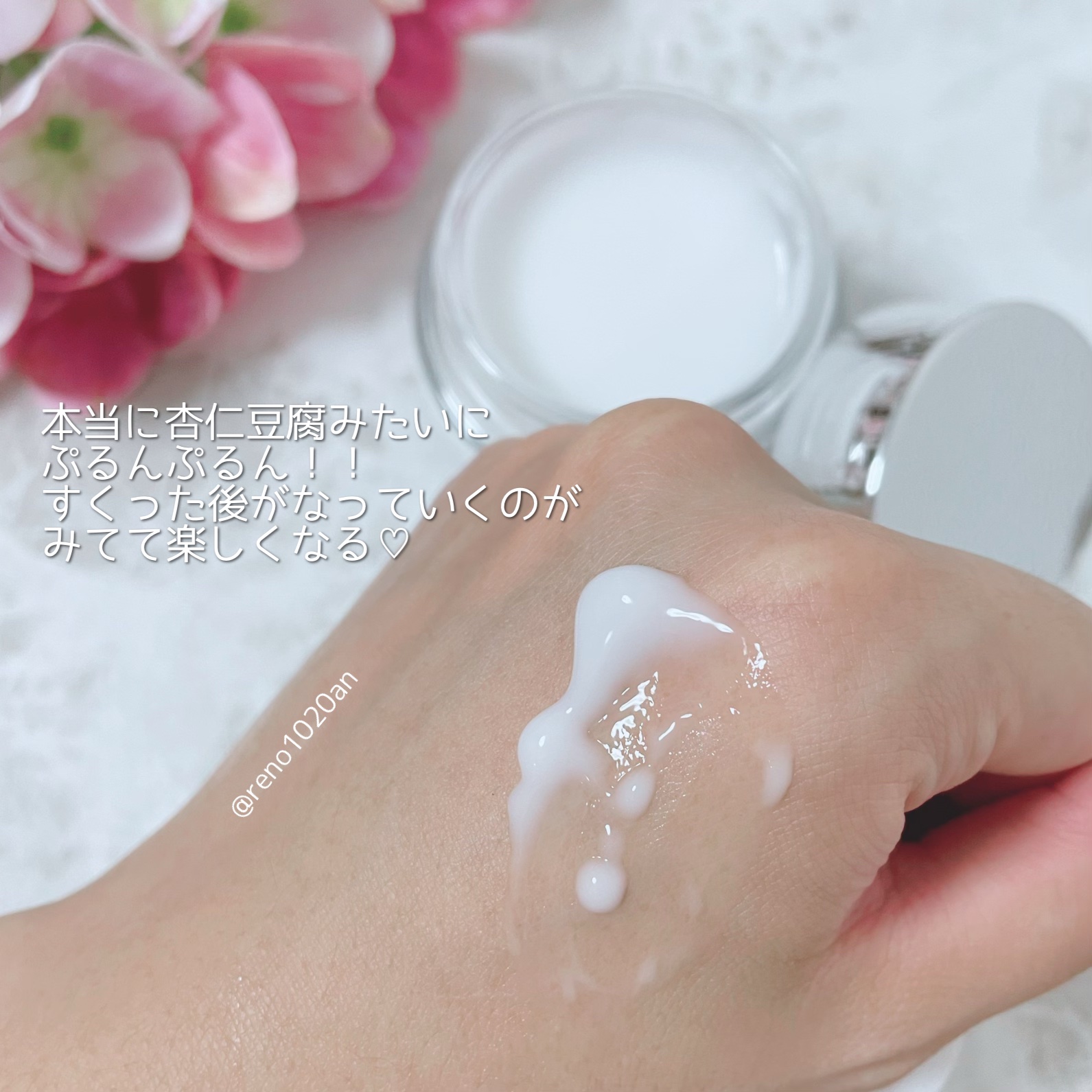 杏仁豆腐の様なテクスチャーで、いつでも明るく輝きのある肌に導いてくれるクリームです😊 シミやくすみ、肌のハリや乾燥に悩みがある人にぜひ使って欲しいアイテムです! 肌に馴染ませるとエッセンスに変化して、すぐに潤いを実感できます。