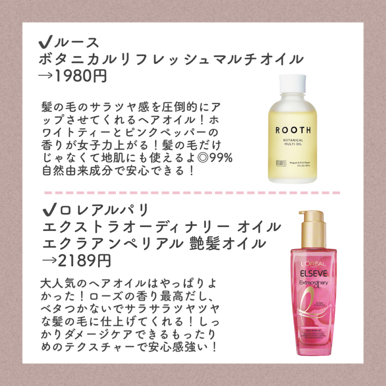 | このオイルは熱から守り、サラサラにするだけでなく艶を出してくれるので本当にすごい♡ | 詳細を見る | |