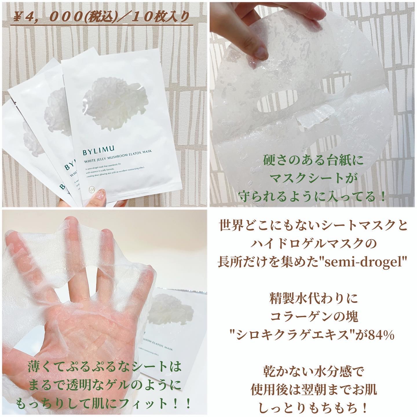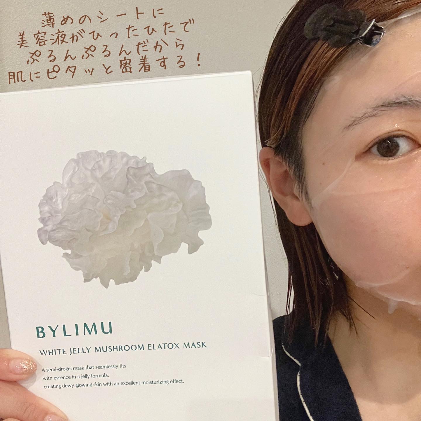 とろっとろでひんやり、贅沢で気持ちいい! BYLIMUのホワイト ゼリー マッシュルーム エラトックス マスク。 貼ったらすごく密着して隙間なく潤うかんじ。 袋の中に美容液もたっぷり入っていてほんとうに贅沢なシートです! べたべたせずもっちり潤うので良いです!