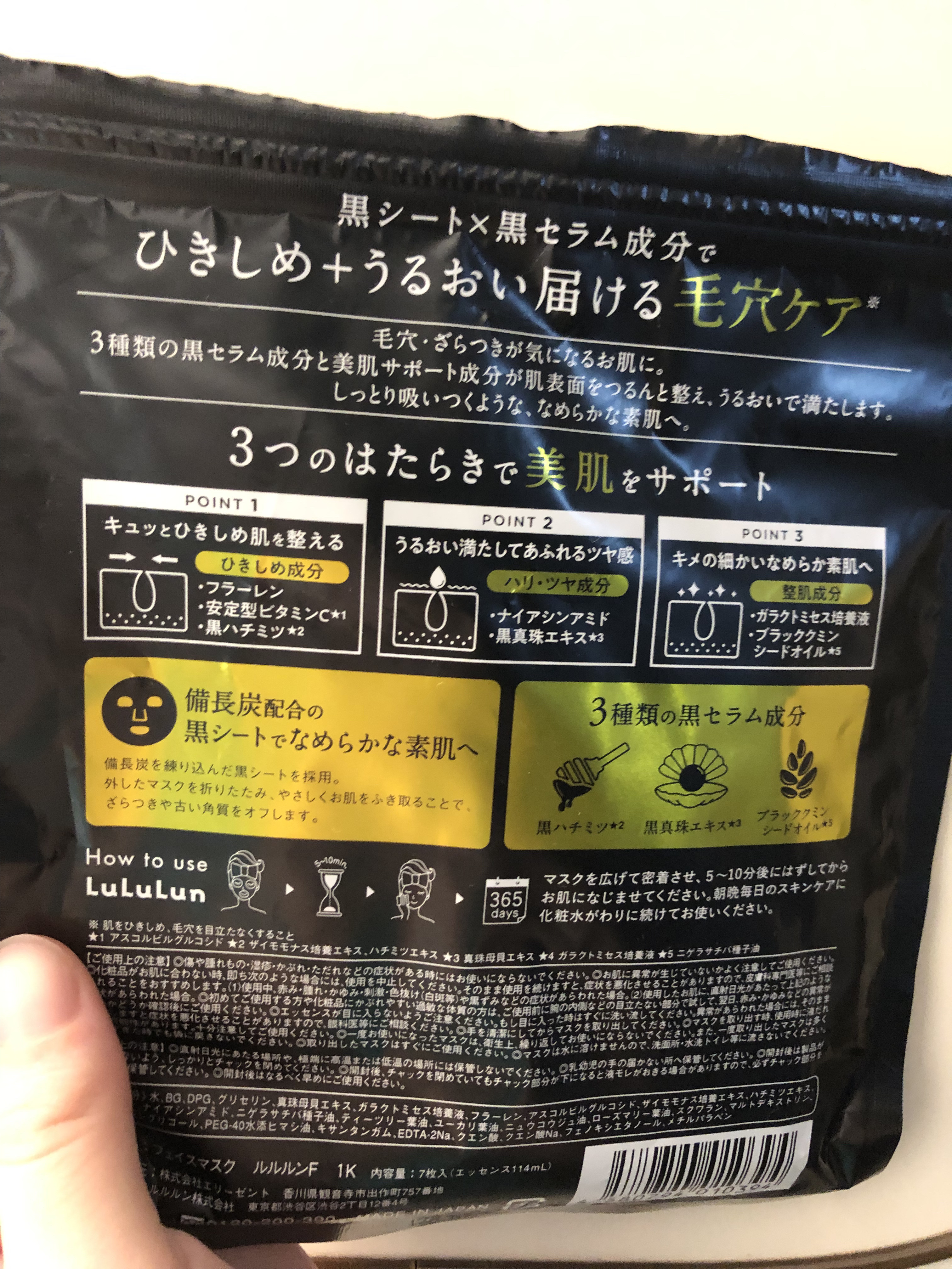 - ルルルンハイドラシリーズから新登場。 備長炭配合の黒シート×黒セラム成分でひきしめ+うるおい届ける毛穴ケア※。 毛穴・ざらつきが気になるお肌におすすめです。3種類の黒セラム美容液と美肌サポート成分がお肌の表面をつるんと整え、うるおいで満たします。 しっとり吸い付くような、なめらかな素肌へ。(※肌をひきしめ、毛穴を目立たなくすること)