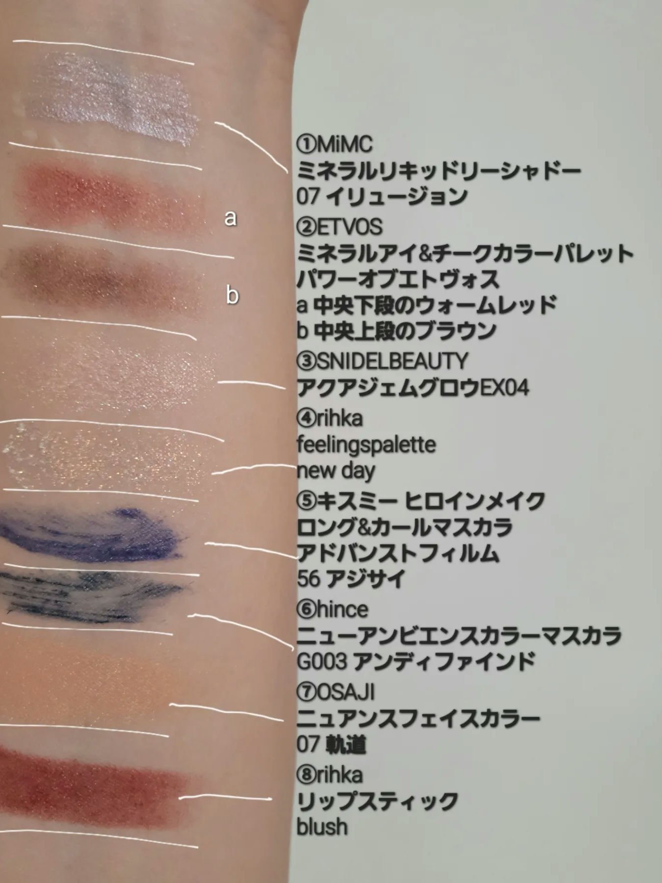 アイブロウは #WHOMEE の#レディモーヴ を使用! #hince の #ニューデップスアイシャドウパレット の a Lowkeyを上瞼全体に馴染ませる。 #rmk の#ザナウナウアイズ 02の #シークレットダスト を目頭に✨ #ヒンス の #ニューアンビエンスカラーマスカラ 上睫毛にブルーの#アンディファインド 下睫毛にオレンジ系の#ライブリー を。 #celvoke の #エンスロールマットリップス 03の テラコッタを💄💋