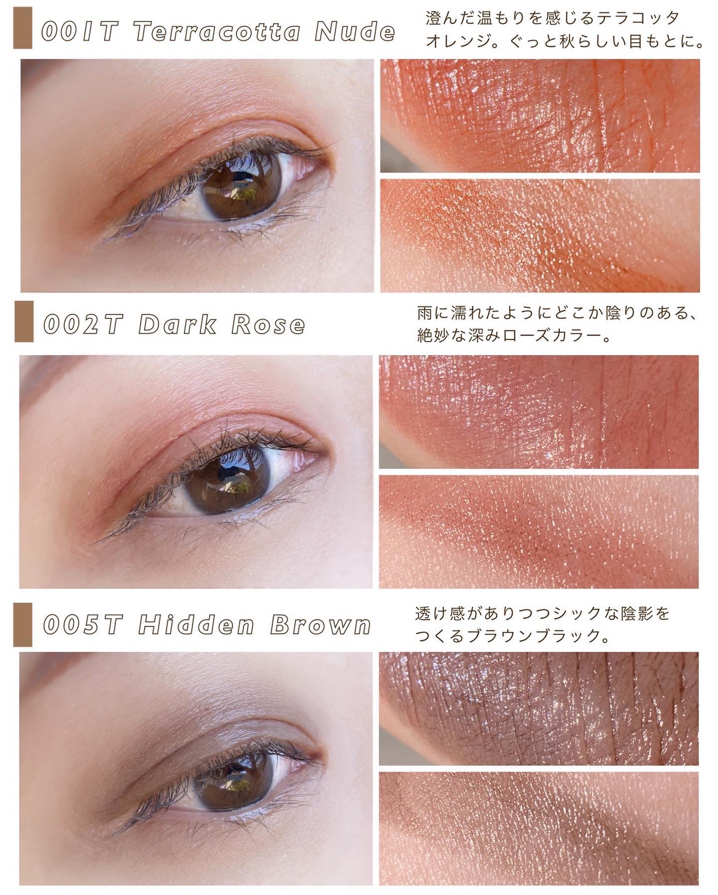 2023年にどどんとリニューアル!全30色展開で新たに発売をスタートしました。 多色パールがこれでもか!ってくらいたっぷり煌めくピンクベージュはほんの少しオレンジのニュアンスも感じられるヘルシーなカラー。 こういうピンクベージュ系の単色シャドウって、ほんとにメイクのベース的に使いやすくて重宝するのよね😚