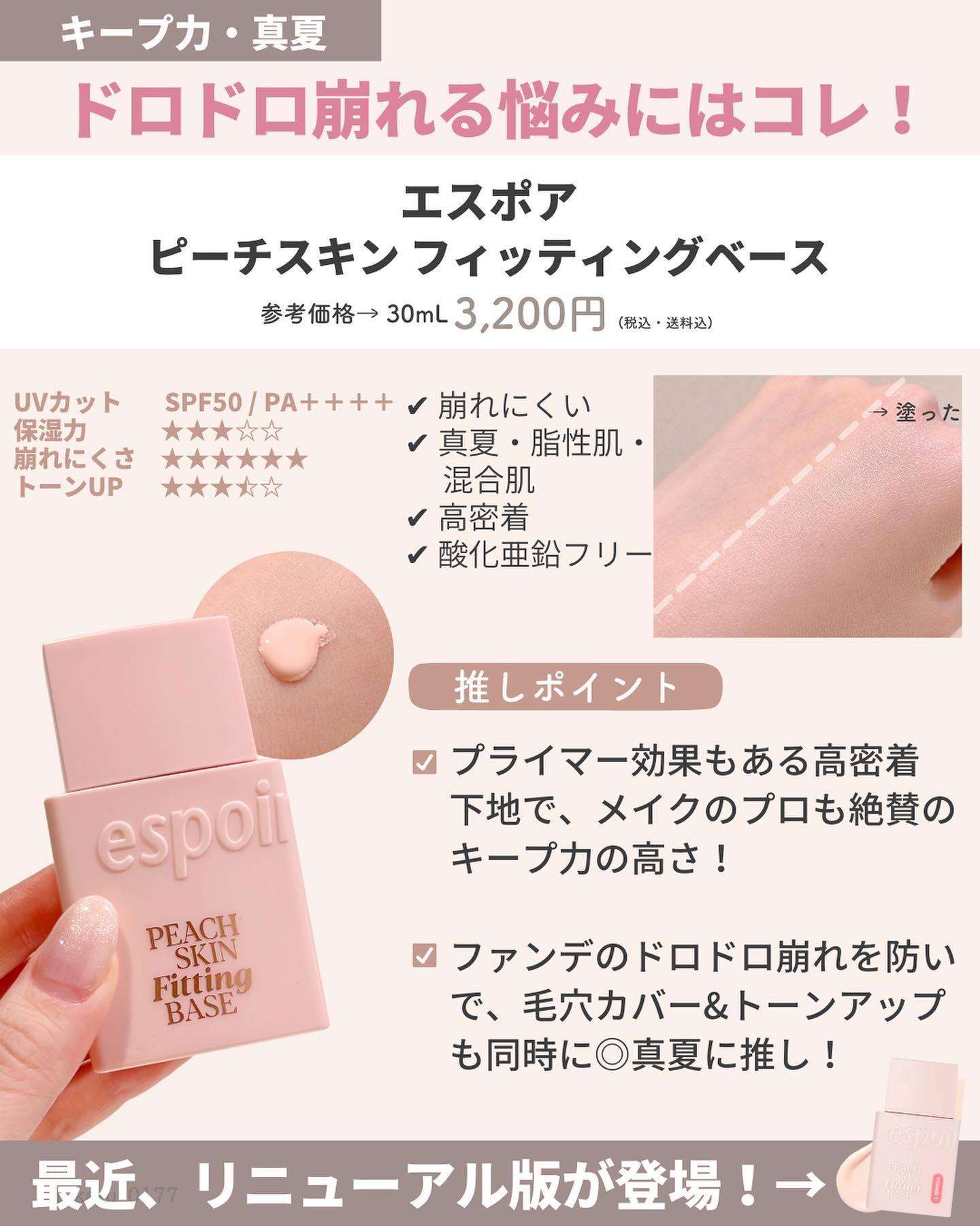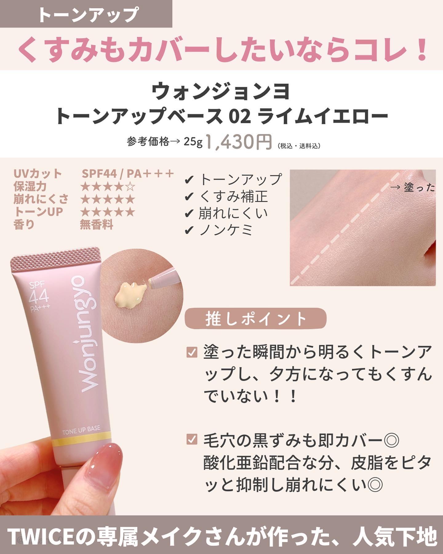 ウォンジョンヨの下地も早速レビュー!!🔥 思っていたよりも、素肌に溶け込み馴染むカラーでした💛 ツヤ肌好きさんに推したいのが、ダルバ✨ 韓国オリヤンでも1位になっていて、よく現地でも広告を見かけます😍 あとバニラコのプライマーもご紹介!🫶 去年も推していた、too cool for schoolの下地にそっくりの使用感で、こちらも馴染ませるとサラッサラに変化します💡 仕込むだけで、毛穴落ちが軽減するので、ぜひチェックしてみてくださいね🤭✨