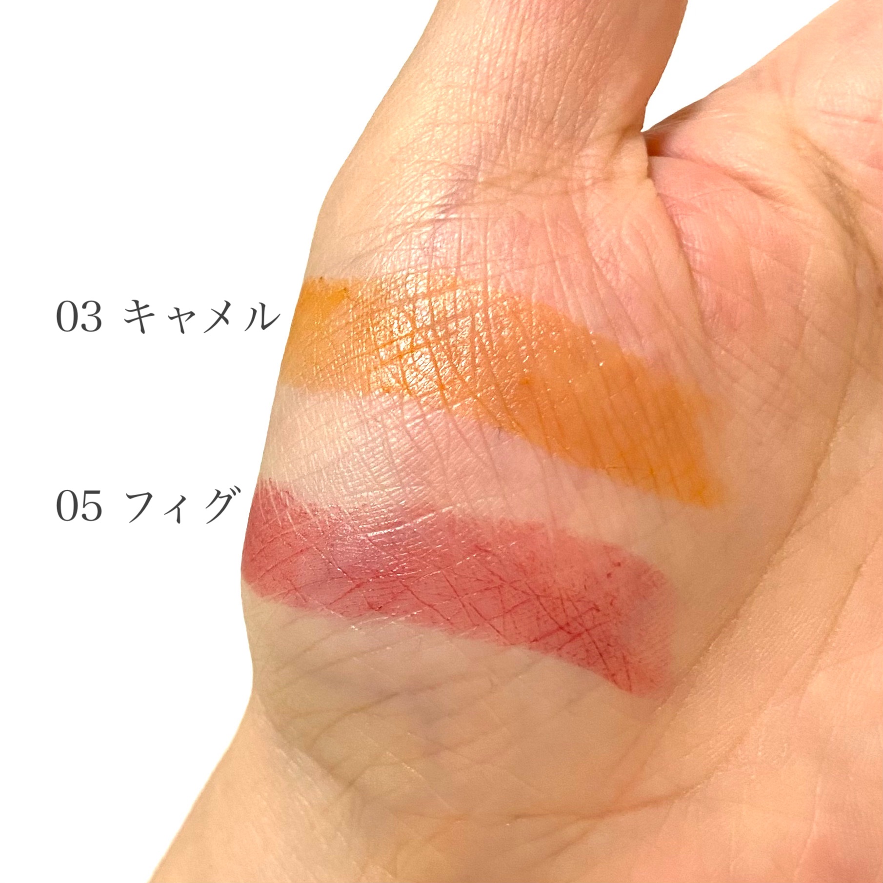 - <01 ブリックレッド> スクワラン、リンゴ酸ジイソステアリル、トリエチルヘキサノイン、イソノナン酸イソトリデシル、ポリエチレン、パラフィン、マイクロクリスタリンワックス、水酸化Al、ジメチコン、トリ(カプリル酸/カプリン酸)グリセリル、マロン酸ジエチルヘキシルシリンギリデン、酢酸トコフェロール、酸化チタン、酸化鉄、赤201、赤202、赤223、橙201、黄4 <02 モーヴピンク> スクワラン、リンゴ酸ジイソステアリル、トリエチルヘキサノイン、イソノナン酸イソトリデシル、ポリエチレン、パラフィン、マイクロクリスタリンワックス、水酸化Al、ジメチコン、トリ(カプリル酸/カプリン酸)グリセリル、マロン酸ジエチルヘキシルシリンギリデン、酢酸トコフェロール、酸化チタン、酸化鉄、赤201、赤202、赤218、橙201、黄4、青1 <03 キャメル> スクワラン、リンゴ酸ジイソステアリル、トリエチルヘキサノイン、イソノナン酸イソトリデシル、ポリエチレン、パラフィン、マイクロクリスタリンワックス、水酸化Al、ジメチコン、トリ(カプリル酸/カプリン酸)グリセリル、マロン酸ジエチルヘキシルシリンギリデン、酢酸トコフェロール、酸化チタン、酸化鉄、赤201、赤202、赤223、橙201、黄4 <04 ブラウン> スクワラン、リンゴ酸ジイソステアリル、トリエチルヘキサノイン、イソノナン酸イソトリデシル、ポリエチレン、パラフィン、マイクロクリスタリンワックス、水酸化Al、ジメチコン、トリ(カプリル酸/カプリン酸)グリセリル、マロン酸ジエチルヘキシルシリンギリデン、酢酸トコフェロール、酸化チタン、酸化鉄、赤201、赤202、赤223、橙201、黄4、青1 <05 フィグ> スクワラン、リンゴ酸ジイソステアリル、トリエチルヘキサノイン、イソノナン酸イソトリデシル、ポリエチレン、パラフィン、マイクロクリスタリンワックス、水酸化Al、ジメチコン、トリ(カプリル酸/カプリン酸)グリセリル、マロン酸ジエチルヘキシルシリンギリデン、酢酸トコフェロール、酸化チタン、酸化鉄、赤201、赤202、赤218、橙201、黄4 <101 スパイシーピンク(限定色)> スクワラン、リンゴ酸ジイソステアリル、トリエチルヘキサノイン、イソノナン酸イソトリデシル、ポリエチレン、パラフィン、マイクロクリスタリンワックス、水酸化Al、ジメチコン、トリ(カプリル酸/カプリン酸)グリセリル、マロン酸ジエチルヘキシルシリンギリデン、酢酸トコフェロール、酸化チタン、赤104(1)、赤201、赤202、赤218、赤223、黄4 <102 ベアピンク(限定色)> スクワラン、リンゴ酸ジイソステアリル、トリエチルヘキサノイン、イソノナン酸イソトリデシル、ポリエチレン、パラフィン、マイクロクリスタリンワックス、水酸化Al、ジメチコン、トリ(カプリル酸/カプリン酸)グリセリル、マロン酸ジエチルヘキシルシリンギリデン、BHT、酢酸トコフェロール、酸化チタン、酸化鉄、赤201、赤202、赤223、橙201、黄4