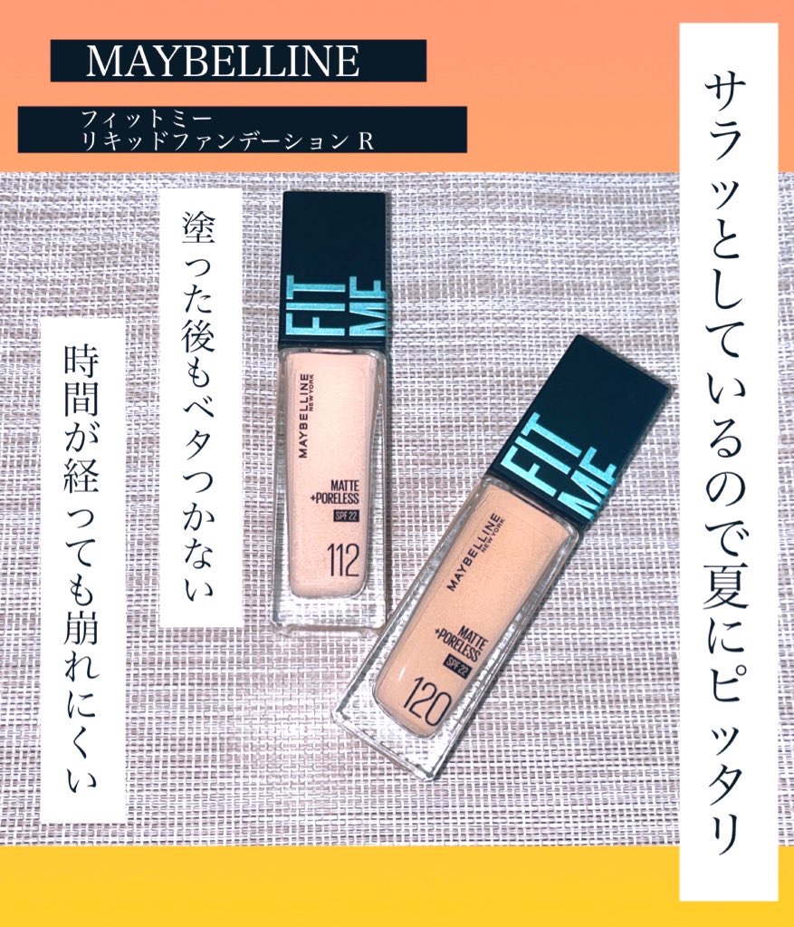 カラバリえぐ!!MAYBELLINENEWYORKフィットミーリキッドファンデーションR112、120ルミマットファンデ人気だけど、、、、フィットミーも負けてないのよ!!軽いつけ心地で肌にぴったり密着し、崩れにくいのがポイント!!毛穴やくすみ...