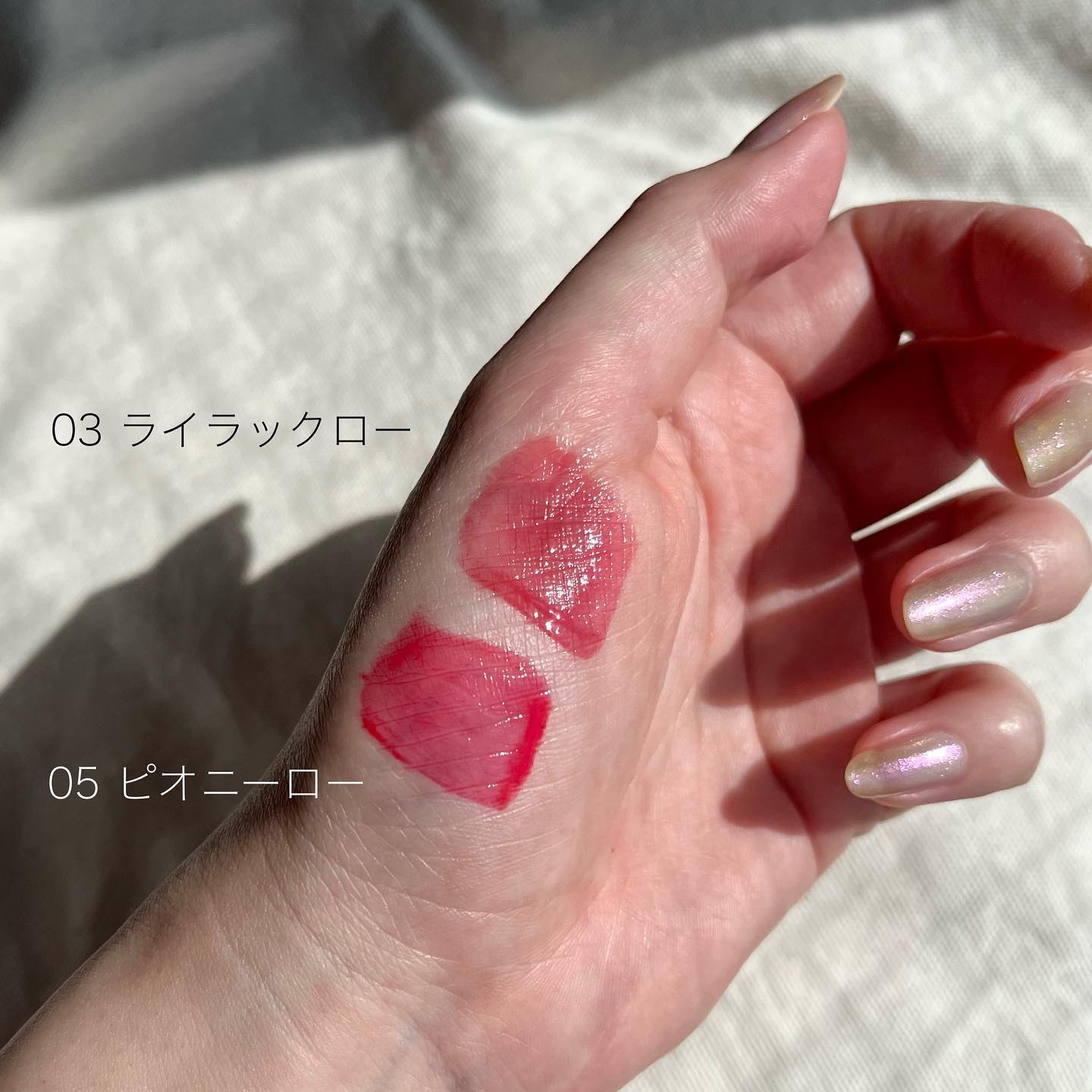 Dior ルージュトラファルガーと LUNASOL スカーレットパッションの比較!! スウォッチだと本当に似てる。まじで笑っちゃうくらい似てる(笑) Diorの方が全体的にラメが入っていて ギラッとした質感なので、派手さがあるかも。 LUNASOLは細かいパールで ほんのりツヤっとして見えて、滑らかな感じ。 Diorの方がバーン!と色が出やすくて LUNASOLは重ねて色を出していく感じ。 Diorのが青み強めで可愛いイメージになりやすくて LUNASOLはニュートラル寄りで大人っぽい。 Diorはオフの日、しっかりメイクで盛りたい日用 LUNASOLは仕事の日でも、きちんとしたい日でも使えるな 色は似てるんだけど、仕上がりの雰囲気や イメージが変わってくるから どっちもあって良かったなと思ってます(笑)
