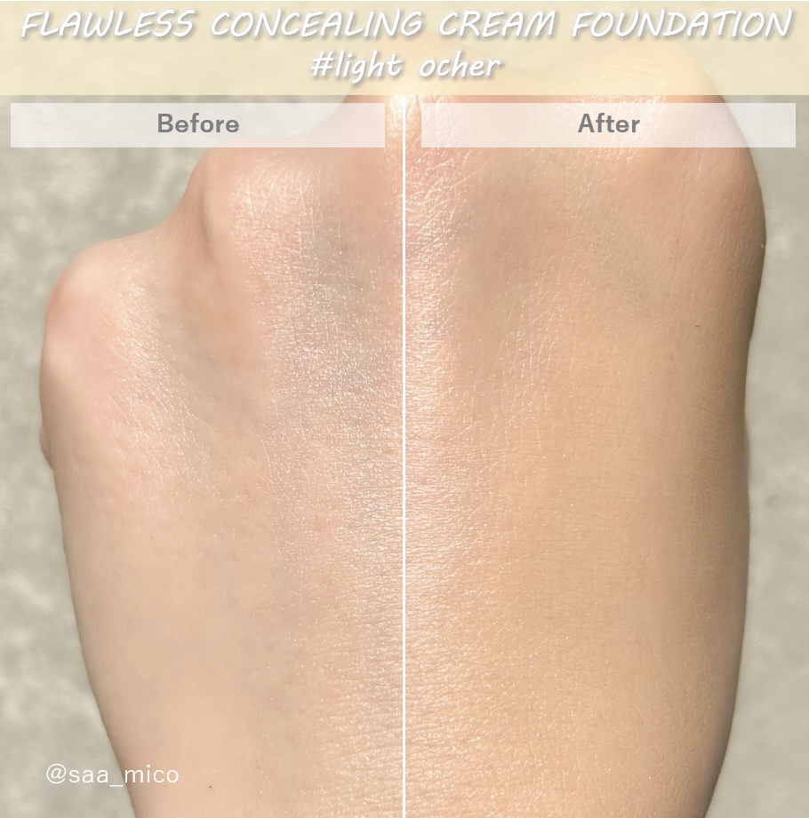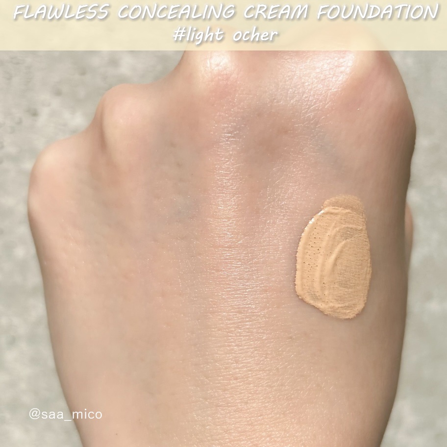 角が立つくらいこっくりしたテクスチャーですが、かなり滑らかな使用感です。 ハイカバーなのに、重すぎない使用感でお気に入り!! 重ねて使えばコンシーラー並みのカバー感で一つあればファンデーションとコンシーラーを賄えて◎