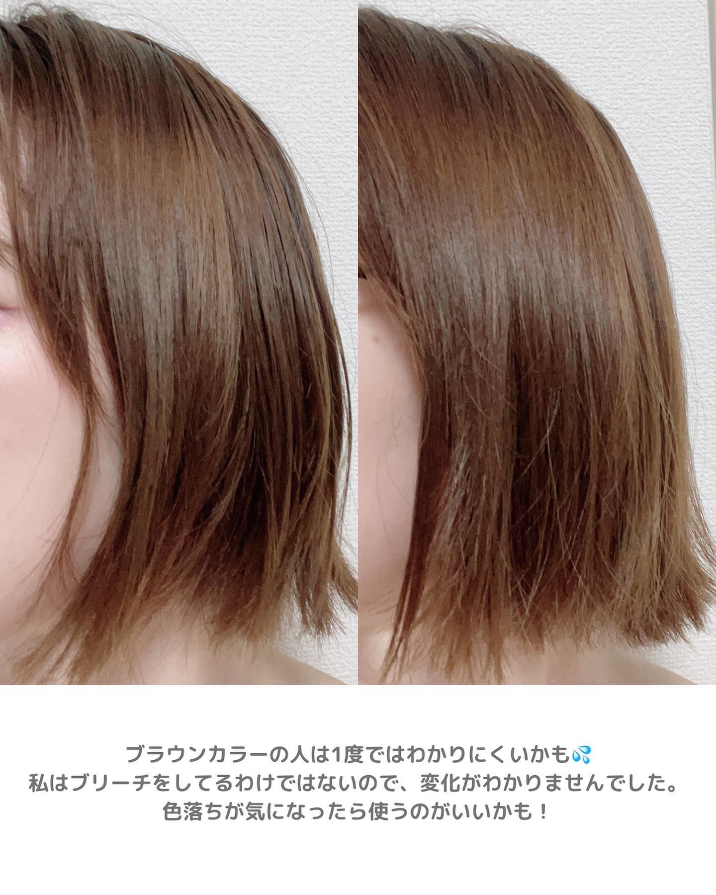 - <シルバー> 水、セテアリルアルコール、グリセリン、セバシン酸ジエチルヘキシル、水添ポリイソブテン、シクロペンタシロキサン、BG、アモジメチコン、ベヘントリモニウムクロリド、ポリクオタニウムー37、加水分解ケラチン(羊毛)、加水分解シルク、加水分解コラーゲン、γードコサラクトン、液状ラノリン、(加水分解シルク/PGプロピルメチルシランジオール)クロスポリマー、アルガニアスピノサ核油、シア脂、ハチミツ、アルギニン、トコフェロール、フィトステロールズ、カプリル酸グリセリル、乳酸、ポリクオタニウムー7、グアーヒドロキシプロピルトリモニウムクロリド、ステアルトリモニウムクロリド、ジステアリルジモニウムクロリド、ステアリン酸グリセリル、塩化Na、ビスセテアリルアモジメチコン、ジメチコン、プロパンジオール、イジプロパノール、エタノール、フェノキシエタノール、安息香酸Na、香料、(+/-)塩基性青99、塩基性茶16、塩基性赤76、塩基性紫2、HC青2 <パープル> 水、グリセリン、セタノール、パルミチン酸エチルヘキシル、ステアリルアルコール、ベヘントリモニウムクロリド、ジメチコン、白金、γ-ドコサラクトン、シア脂、ハチミツ、アルガニアスピノサ核油、フィトステロールズ、アルギニン、乳酸、PEG-90M、アモジメチコン、ステアルトリモニウムクロリド、ポリソルベート80、ジステアリルジモニウムクロリド、プロパンジオール、イソプロパノール、エタノール、フェノキシエタノール、香料、(+/-)塩基性青124、塩基性赤51、塩基性黄57、HC黄4、HC青2、塩基性紫2 <ピンク> 水、グリセリン、セタノール、パルミチン酸エチルヘキシル、ステアリルアルコール、ベヘントリモニウムクロリド、ジメチコン、白金、γ-ドコサラクトン、シア脂、ハチミツ、アルガニアスピノサ核油、フィトステロールズ、アルギニン、乳酸、PEG-90M、アモジメチコン、ステアルトリモニウムクロリド、ポリソルベート80、ジステアリルジモニウムクロリド、プロパンジオール、イソプロパノール、エタノール、フェノキシエタノール、香料、(+/-)塩基性青124、塩基性赤51、塩基性黄57、HC黄4、HC青2、塩基性紫2 <ミルクティー> 水、セテアリルアルコール、グリセリン、セバシン酸ジエチルヘキシル、水添ポリイソブテン、シクロペンタシロキサン、BG、アモジメチコン、ベヘントリモニウムクロリド、ポリクオタニウムー37、加水分解ケラチン(羊毛)、加水分解シルク、加水分解コラーゲン、γードコサラクトン、液状ラノリン、(加水分解シルク/PGプロピルメチルシランジオール)クロスポリマー、アルガニアスピノサ核油、シア脂、ハチミツ、アルギニン、トコフェロール、フィトステロールズ、カプリル酸グリセリル、乳酸、ポリクオタニウムー7、グアーヒドロキシプロピルトリモニウムクロリド、ステアルトリモニウムクロリド、ジステアリルジモニウムクロリド、ステアリン酸グリセリル、塩化Na、ビスセテアリルアモジメチコン、ジメチコン、プロパンジオール、イジプロパノール、エタノール、フェノキシエタノール、安息香酸Na、香料、(+/-)塩基性青99、塩基性茶16、塩基性赤76、塩基性紫2、HC青2