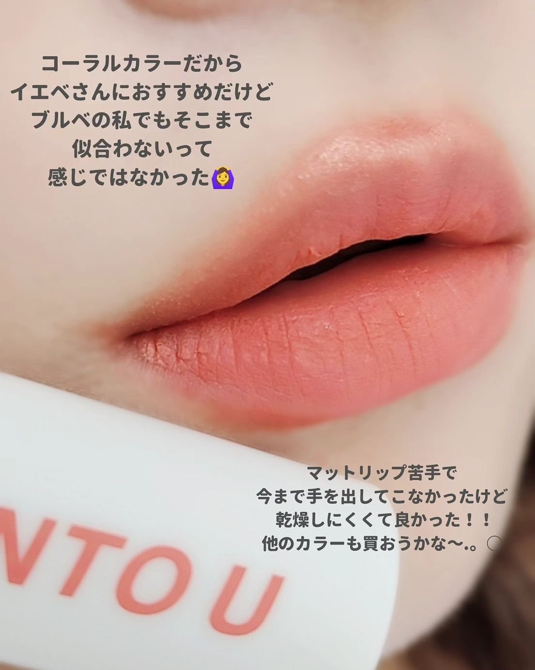 | ふんわり柔らかなつけ心地のもちもちリップ。しっとりした仕上がりなので、マット使ったことない人も試しやすいと思う◎ | 詳細を見る |