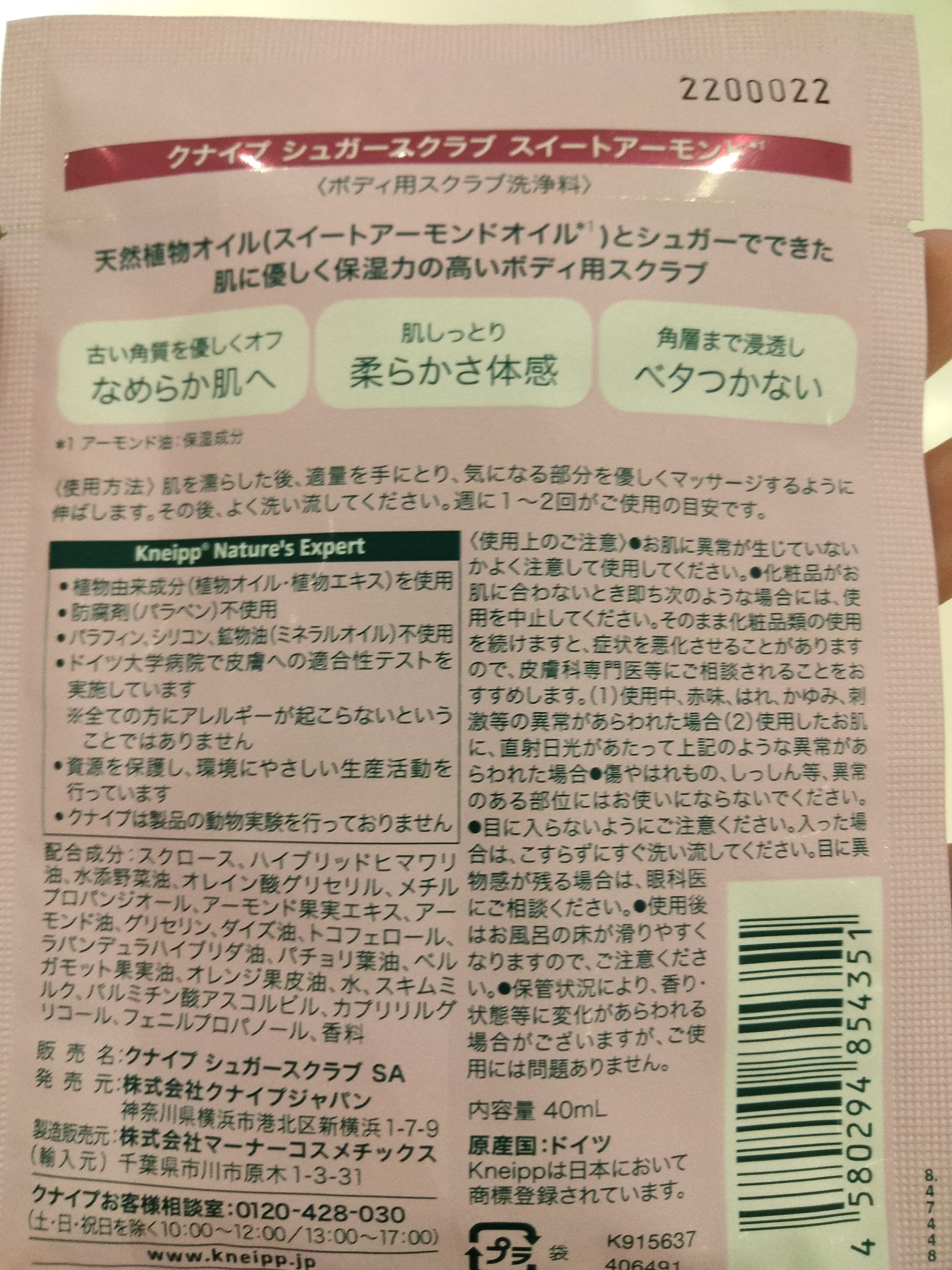 商品詳細情報クナイプ クナイプ シュガースクラブ スイートアーモンド