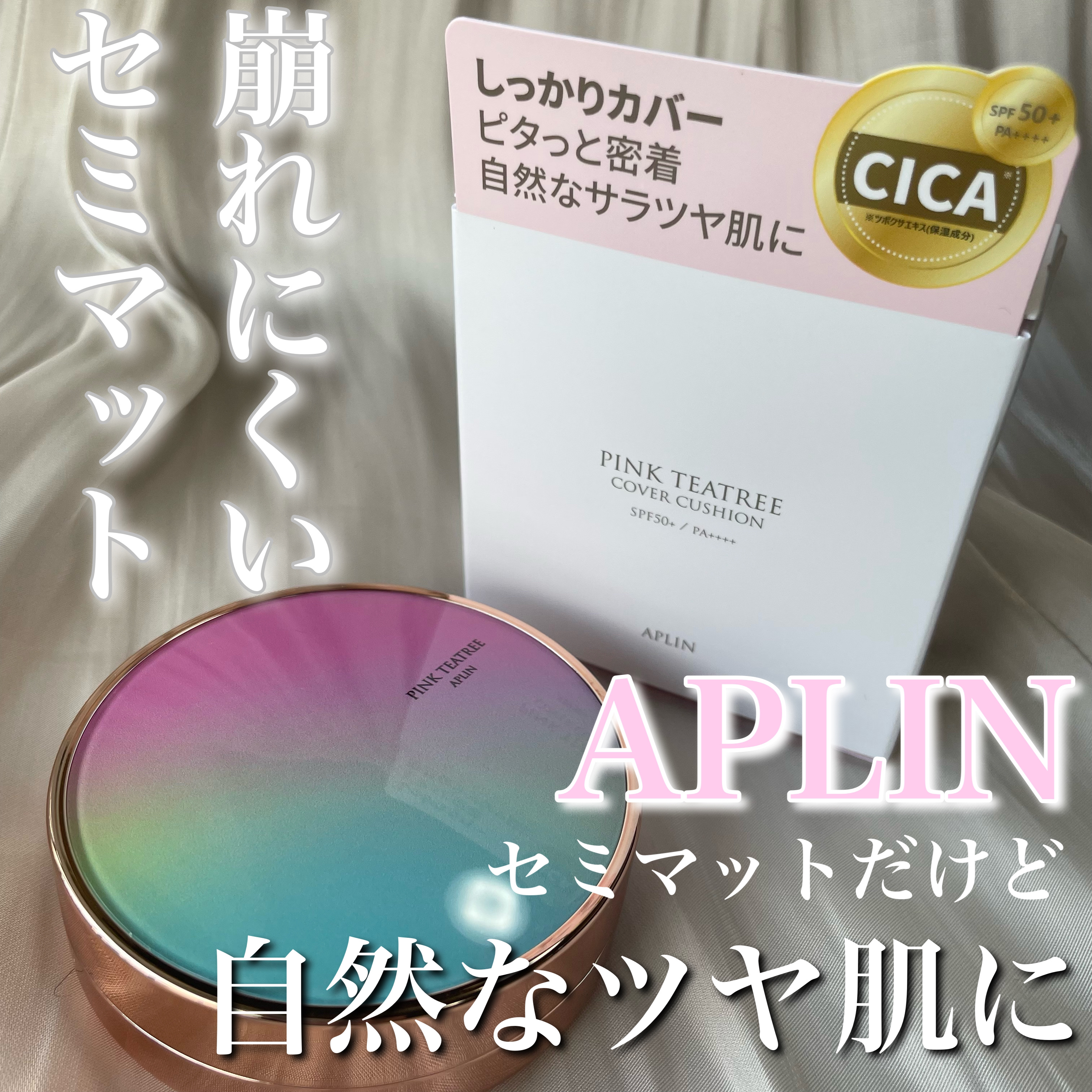 ケアしながらメイクアップ!夏にも冬にも使えるクッションファンデーション APLIN ピンクティーツリープライマーカバークッション 密着力がすごくて、夏の崩れやすい時期も汚く崩れる事がなかったし、乾燥の気になる今は、パサつきを感じずに両方の季節で使い心地が良かったです♪ ピンクのパッケージも可愛くてお気に入り💓 これでティーツリーやシカでケアができてるのならかなりのいいアイテムかな思いました!