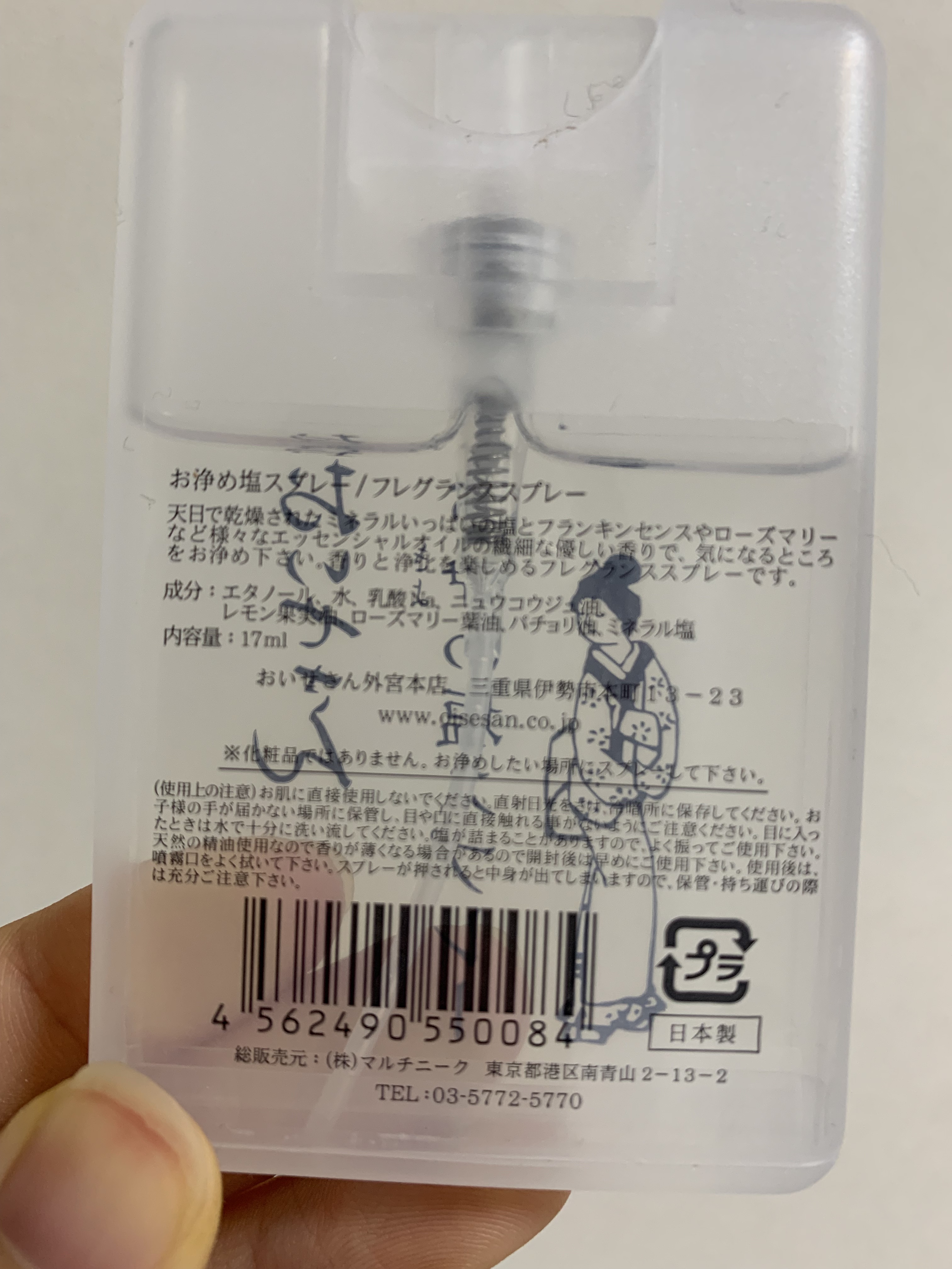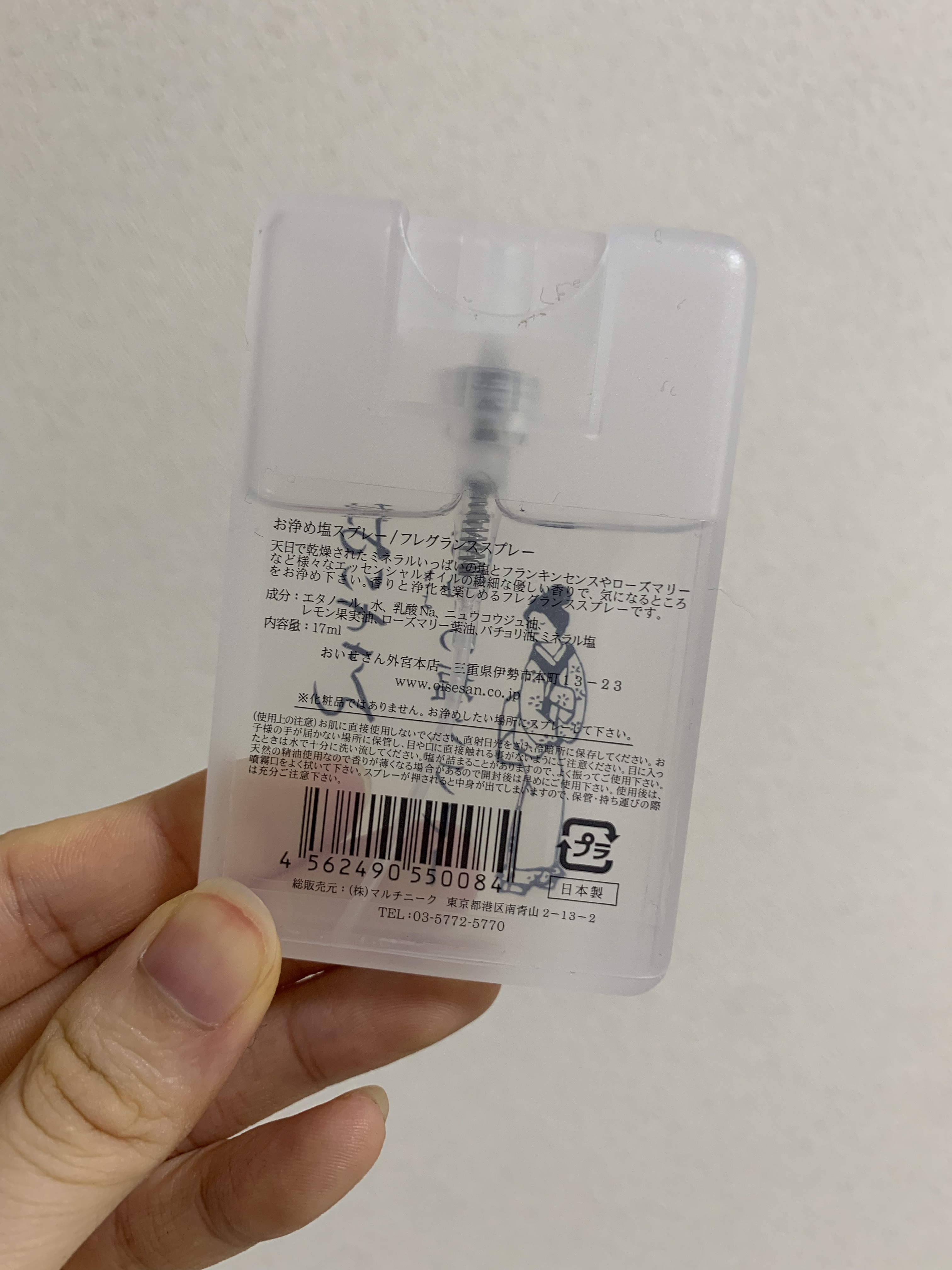 吹きかけるとハーブの香りでとっっっても癒されます!!! お浄め塩スプレーを購入したんです、、、笑 お浄め塩スプレーをすると気持ちが軽くなる気がします😂ほんとうに個人的な感想です!!!!! このスプレーのおかげというよりは、ポジティブな思い込みが大切なのかな〜ということに気がつきました 香りが素敵なので、みなさんにオススメしたいですが、特に私みたいな性格の方には本当におすすめです!!
