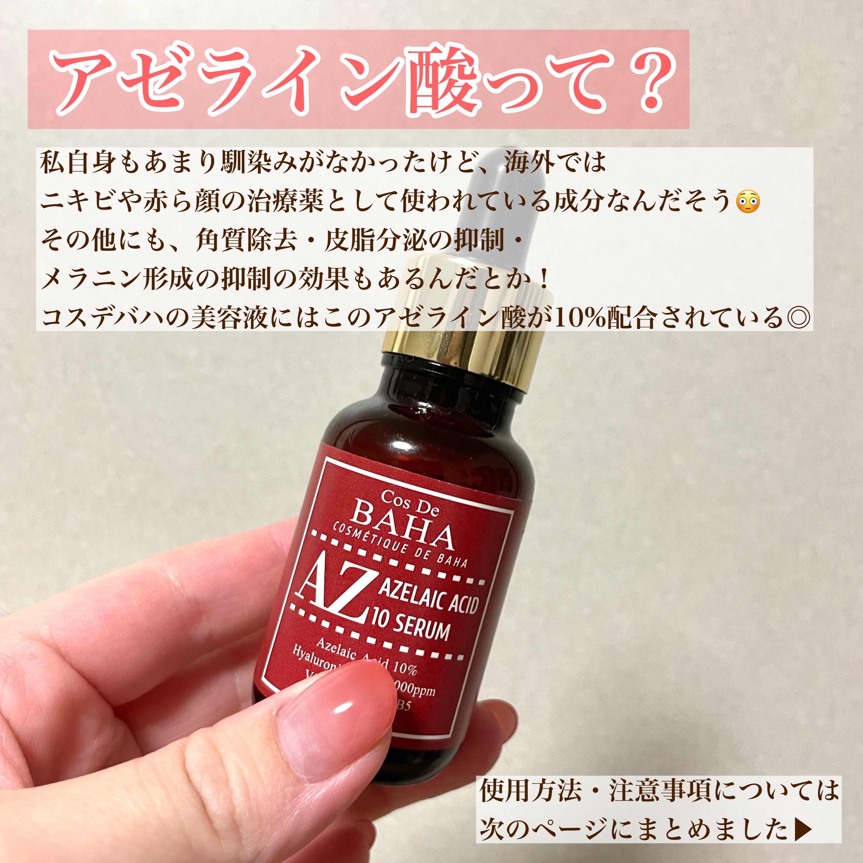 コスデバハさまからいただきました。AZアゼライン酸15%美容液 30mlコスデバルから新作🔥ニキビや赤みなどに効果的なアゼライン酸が15%配合された高濃縮美容液。5%、10%、15%の3種展開。濃度の高い15%は肌トラブルの集中ケア、素早...