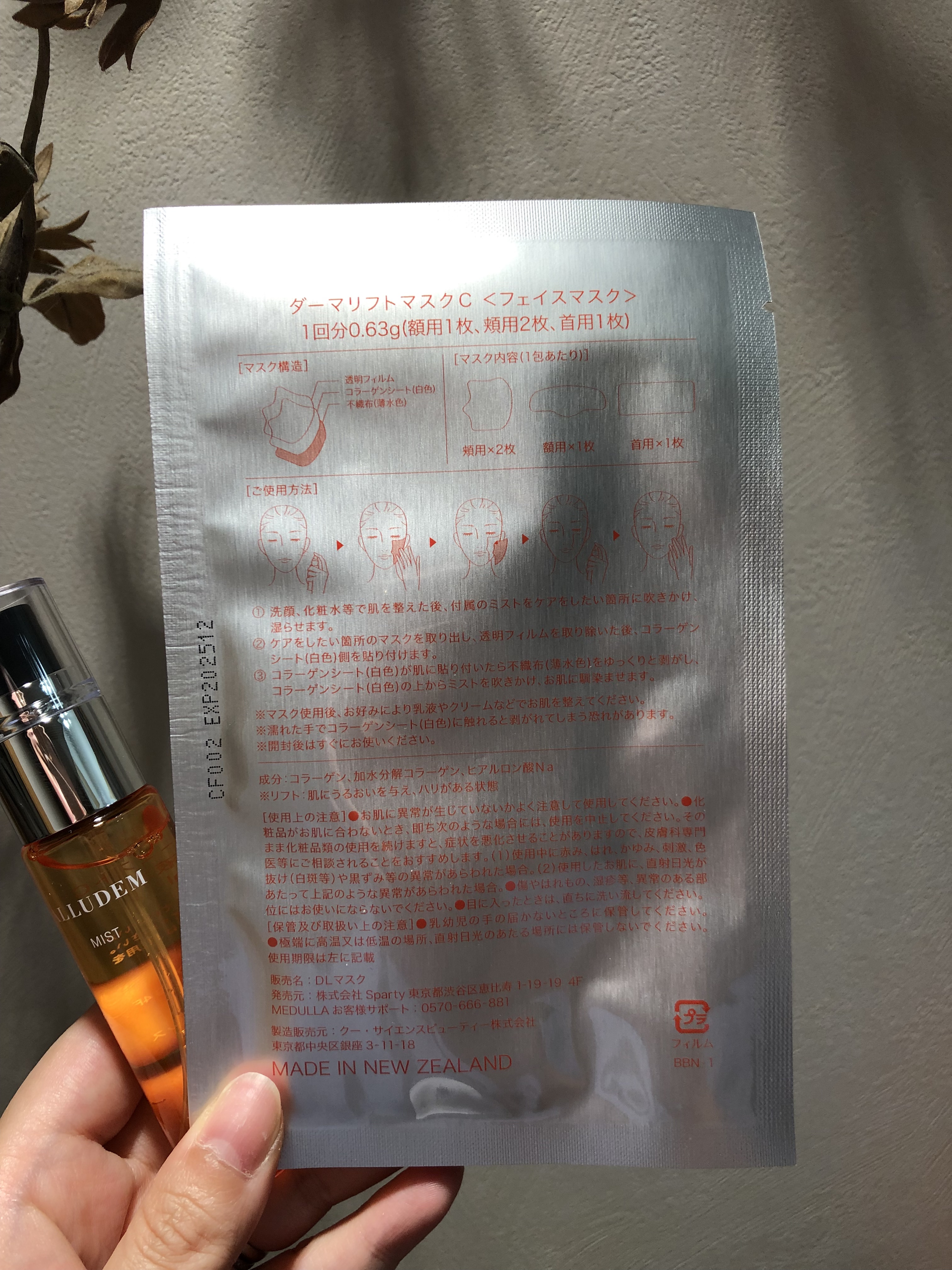 マスクは毛穴より微細なナノファイバー化されており、角質層まで浸透! ダーマレイヤーの特殊技術を採用し、美容成分を毛穴より微細なナノファイバー化。 手に吸い付くような保湿感やハリ感を体験できます🍀 頬、額、首用とシートが分かれており、 ミストは細かく、肌馴染みの良いテクスチャー。 ケア後の肌はしっとりもちっとした使い心地で、とても贅沢なパックでした☺️🤍