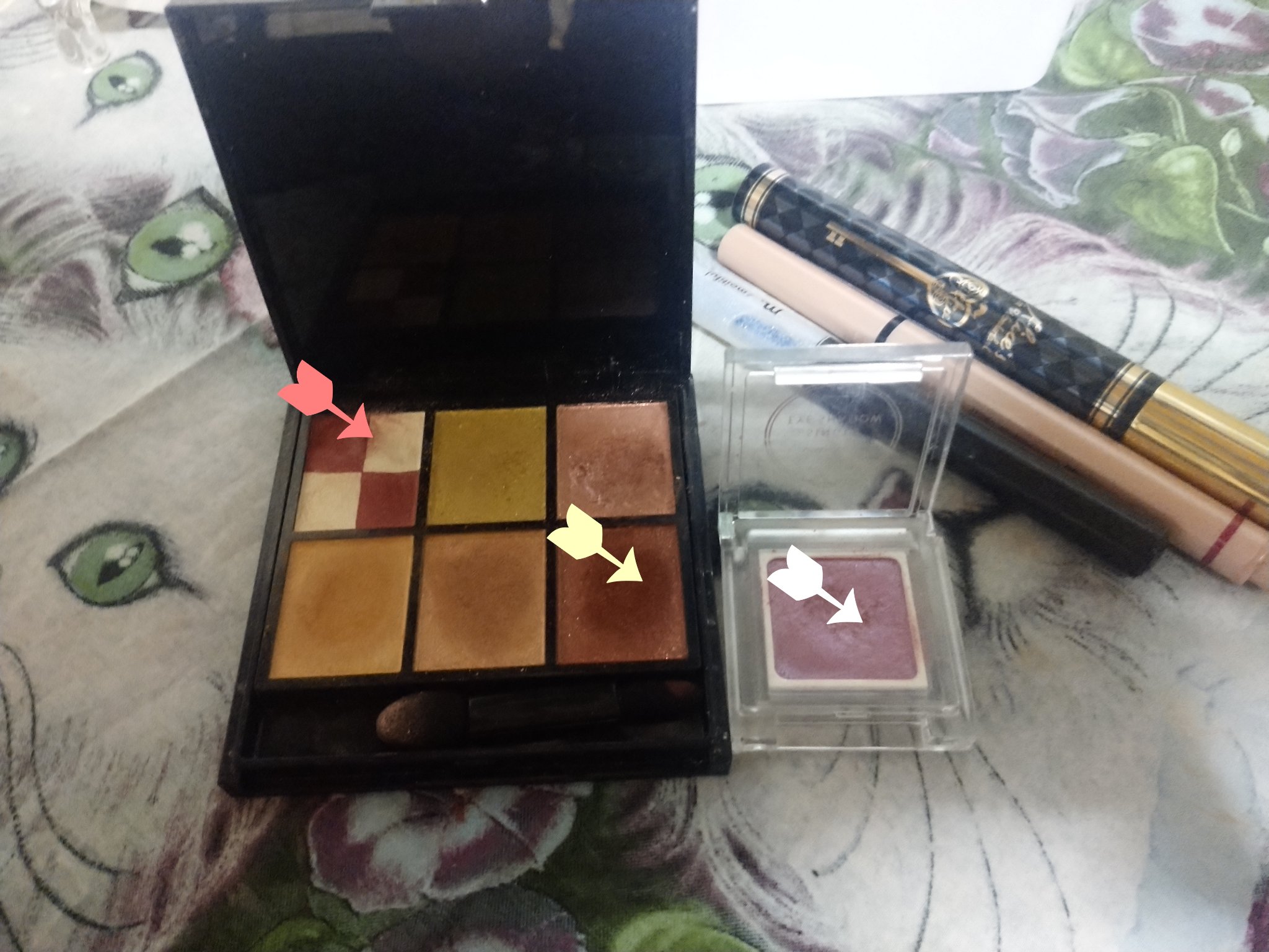 \今日のコーラルレッドメイク🍊/♡••••♡ダイソーKyummeドリームアイシャドウパレット04コーラルレッド&.WithCharmアイライナー03aダークブラウンettusaisマスカラベースLE08〈まつ毛用化粧下地〉♡••••♡コーラル...